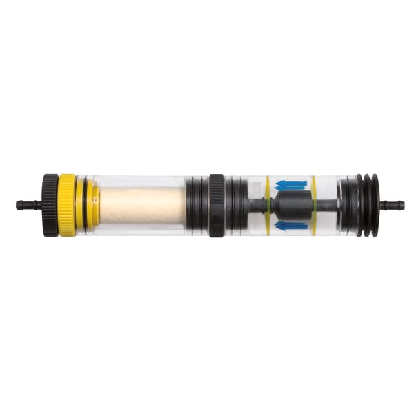 Condensate trap for separating and collecting the condensate during the flue gas measurement. Version KFP 2P suitable for compact flue gas probe AKS-K and measuring instrument BLUELYZER ST. Version KFP suitable for modular probe system; connection at the gas sampling hose in the base handle AWS-B.