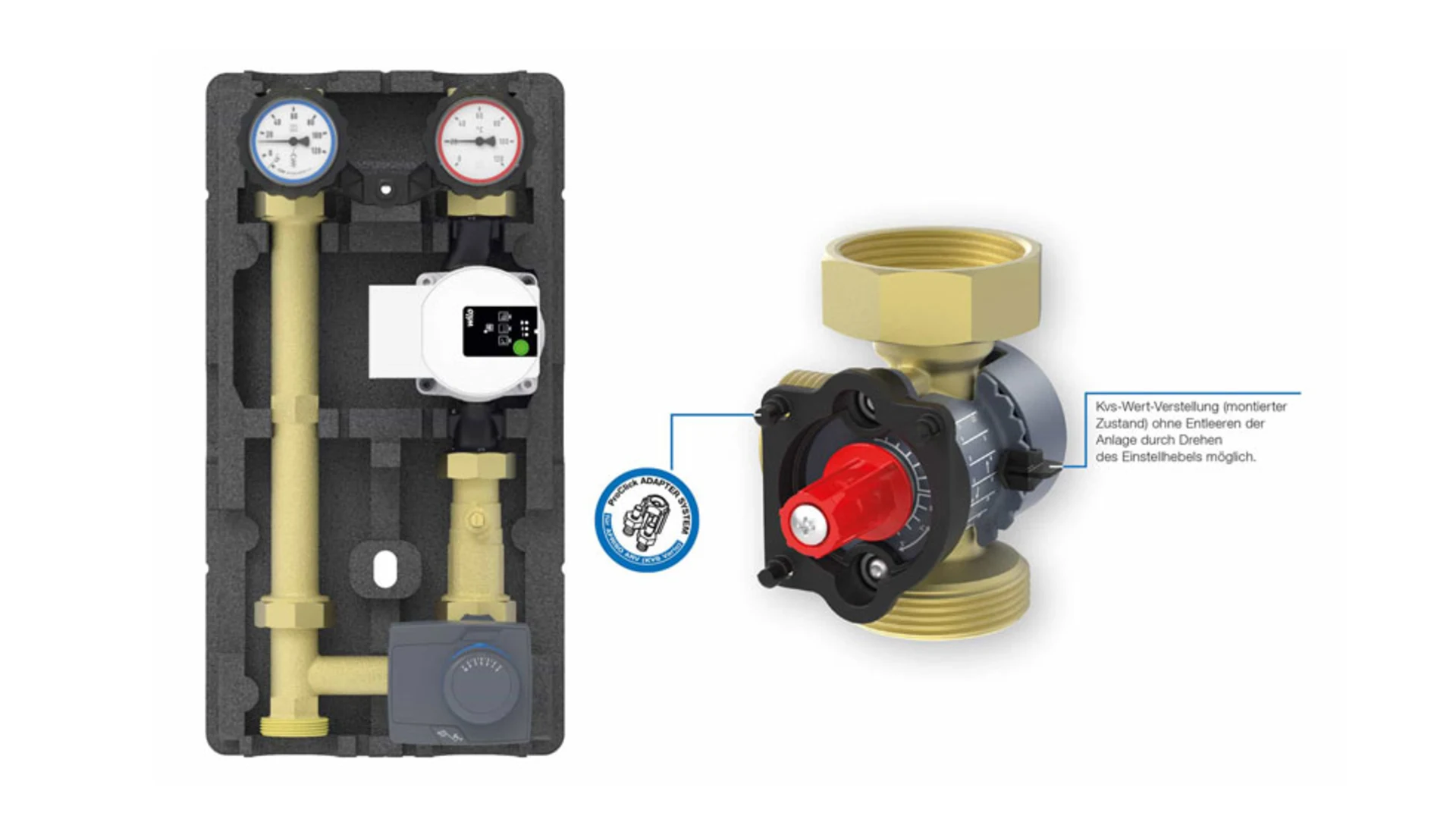 A single mixing valve for multiple use cases 10 Feb 2020 PrimoTherm® 180, AFRISO's proven heating pump assembly, is a highly versatile unit for numerous installation tasks: The system assembly for heating system circuits is available in two sizes with three versions each. It covers a wide variety of requirements with maximum efficiency and reliability. Three versions are available with nominal size DN 25 – all of them pre-assembled, tightness-tested and heat-insulated. They are available with optional high energy efficiency pumps. Now, the range is getting even more powerful: The new 3-way mixing valve ARV 325 for the heating pump assembly PrimoTherm® 180-2 DN 25 KVS Vario offers maximum flexibility right down to the construction site and facilitates hydraulic balancing. The AFRISO heating pump group PrimoTherm® 180-2 DN 25 KVS Vario offers not only a tool-free actuator but also another refinement: a 3-way mixing valve with an adjustable Kvs value! The 3-way mixing valve ARV 325 is the key component of the heating pump assembly PrimoTherm®. The clear, easy-to-read scale lets you set the flow coefficient Kvs to a value between 2.5 and 12 m3/h at any time – even without draining the system. For initial mounting, the flow coefficient Kvs can also be set with a standard slotted screwdriver at the rear of the mixer. Incorrect rating is therefore a thing of the past. Hydraulic balancing is also considerably facilitated. Particularly simple: For initial mounting, the flow coefficient Kvs value can be set with a standard slotted screwdriver on the rear side of the mixer. The flow coefficient is an important parameter in hot water heating installations and plays a key role in optimum heat supply to the heating surfaces. So far, mixing valves in installations had to be correctly rated before they were mounted and adjusted to the required flow coefficient Kvs of the system. In the case of planning errors or design changes, the valve is usually not properly designed. A mere estimation of the flow coefficient Kvs often leads to malfunctions during operation.A mixing valve that is not correctly rated or not rated at all usually leads to frequent on and off cycles of the heat generator which becomes inefficient, and by undesirable noise in the hot water supply piping.Adjusting the flow coefficient Kvs without draining the systemWith the new 3-way mixing valve ARV 325 as the core component of the pump assembly, such challenges are now a matter of the past. The clear, easy-to-read scale lets you set the flow coefficient Kvs to a value between 2.5 und 12 m3/h at any time – even without draining the system. For initial mounting, the flow coefficient Kvs can also be set with a standard slotted screwdriver at the rear of the mixer. Tanks to the easy adjustment of the flow coefficient Kvs, incorrect rating is therefore a thing of the past. Handling is just as easy, down to the last detail: an adapter on the mixing valve is used to attach the AFRISO ARM ProClick actuator at the correct position without tools.More efficiency – from warehousing to installationOptimum adaptation to the respective control requirements of the system entails lasting benefits: Smaller volume jump/smaller, minimum controllable power, larger valve authority, and full use of the entire mixer control range (0 to 100 %). Hydraulic balancing is also significantly simplified because the power required to heat the heating surfaces is available and can be used. The flexibility of the 3-way mixing valve also has practical advantages for both wholesalers and heating system professionals: The variety of pump assemblies is reduced which simplifies storage logistics.Powerful system assemblies in three versionsThe new 3-way mixing valve thus successfully rounds off the functionality and variety of the PrimoTherm® system assemblies. The versions of the PrimoTherm® DN 25 are tailored to a wide range of requirements: The version 180-1 is used in non-mixed heating circuits, especially for storage tank charging. Version 180-2 was specially designed for mixed heating circuits. With the 3-way mixer and the actuator, the flow temperature can be adjusted to the desired temperature by adding water from the return. Good to know: PrimoTherm® 180-2 can also be used with solid fuel boilers to raise the return temperature*. Version 180-3 automatically controls the return temperature of the system water to the heat generator to the value adjusted in the valve. All versions feature a deactivatable gravity brake integrated in the ball valve.Installation individually or side by side on AFRISO boiler manifoldsThe system is modular so that the flow line can be mounted at the left or the right side. Each pump assembly is shipped with a high-grade mounting kit for wall mounting. Due to the slim design, it is also possible to mount several pump assemblies next to each other on AFRISO boiler manifolds.All circulation pumps offered by AFRISO meet the requirements of the European Ecodesign Directive (stage 2 as of 2015). The universal insulation allows for the installation of virtually any standard pump without reworking of the insulation. AFRISO pump assemblies are also BAfA-listed* – a key benefit for unbureaucratic subsidies. For example, private persons, companies or municipalities get back 30 % of the net investment costs through the "Federal funding for efficient buildings - heating optimization". With the PrimoTherm® assemblies and the new mixing valve, heating system professionals are in a perfect position to meet a great wide variety of installation challenges.* Control required