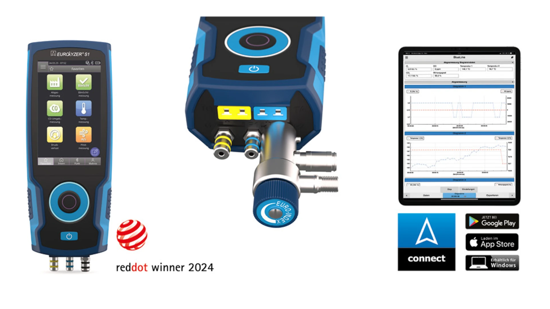 Award-winning product design: Red Dot Award for EUROLYZER® S1 21 Jun 2024 "Only products that demonstrate outstanding design are awarded the coveted seal of quality by the international jury", explains Red Dot on the announcement of this year's award winners. EUROLYZER® S1 came out on top against strong competition in the Product Design category. The outstanding workmanship and innovative design of this all-rounder received particular recognition. Award-winning for its outstanding product design: The EUROLYZER® S1 impressed the jury of the Red Dot Award 2024 with its innovative, functional design. Thanks to smart features such as the possibility to directly fit a pressure test valve, other measuring tasks such as tightness tests can also be carried out reliably and intuitively. HVAC 4.0: In conjunction with the free EuroSoft® connect app, the user can generate professional and standards-compliant PDF reports in an intuitive way. Superior quality - simple operationThe TÜV-tested EUROLYZER® S1 has been specially developed for the requirements of oil-, gas- and pellets-fired systems and offers a professional solution for day-to-day installation and maintenance work on heating systems. With its fast and uncomplicated Bluetooth® connection to more than 35 sensor modules and sets of the proven CAPBs® system from AFRISO, it is ideally suited for a multitude of other HVAC measuring tasks.With its robust and compact design, the measuring instrument meets all requirements regarding durability and reliability. In addition to the clear menu-based user interface, the large, fully-fledged touch display made of scratch-resistant armoured glass contributes to easy operation.Standards-compliant documentation includedYet another benefit of using the EUROLYZER® S1: in conjunction with the free EuroSoft® connect app, it supports specialised companies with digitalisation and provides for simple, time-saving and standards-compliant documentation of measurements - right through to professional PDF reports including company logo, photos, notes and signature.Visit www.eurolyzer.de for more information and videos on the Red Dot award-winning product "Made in Germany"
