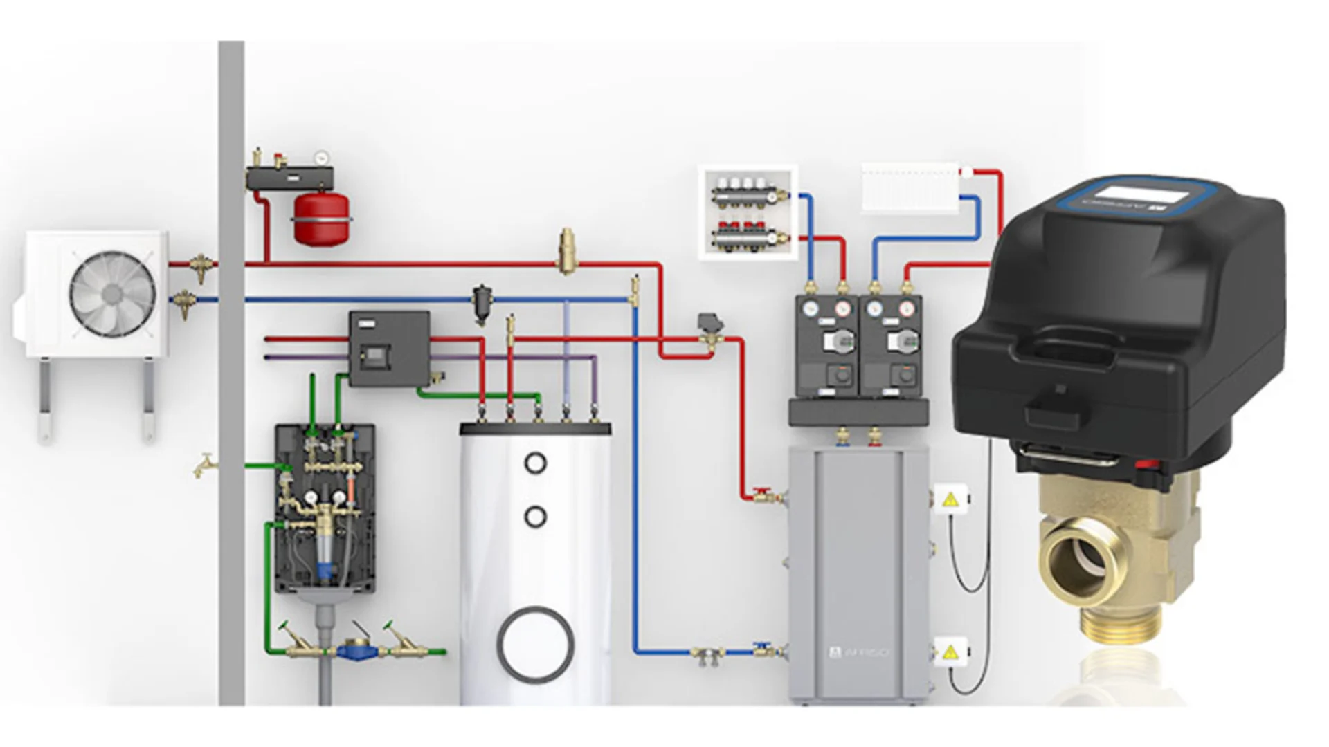 Zone valve AZV from AFRISO: easy toggling between operating modes 13 Mar 2025 HVAC specialists can easily integrate the zone valve AZV in heat pump systems or hybrid systems. The valve with an electrical drive allows for rapidly switching between the operating modes "heating" and "cooling" or "heating" and "service water heating". In hybrid systems, it is possible to toggle between the heat pump and, for example, a condensing gas or oil boiler. The AFRISO zone valve is suitable for all switching tasks in hydraulic systems, heat pumps or hybrid systems. A traffic light system provides for easy to see position indication. In heat pump systems, AZV allows for simple and reliable changes of the operating mode, for example, for switching between service water heating and room heating. Intuitive traffic light systemThe smart traffic light system is a practical function for the installer: A position indicator shows the switching state of the valve in red and green. In addition, it can be used for switching over in hot water storage tank applications and is also suitable for shutting off.2-way and 3-way versionsDifferent housing versions allow the zone valve to be adapted to the application and location. 2-way and 3-way versions are available. The direction of flow in the rest position of the 2-way valve can be changed while the valve is installed, without the necessity to open the water circuit.High tightness – low pressure lossThe robust design results in a long service life, freedom from maintenance and complete tightness with low pressure loss. The zone valve AZV consists of brass on the outside and high-grade plastic on the inside. Design and development are backed by AFRISO's decades of expertise in the production of plastic valves.