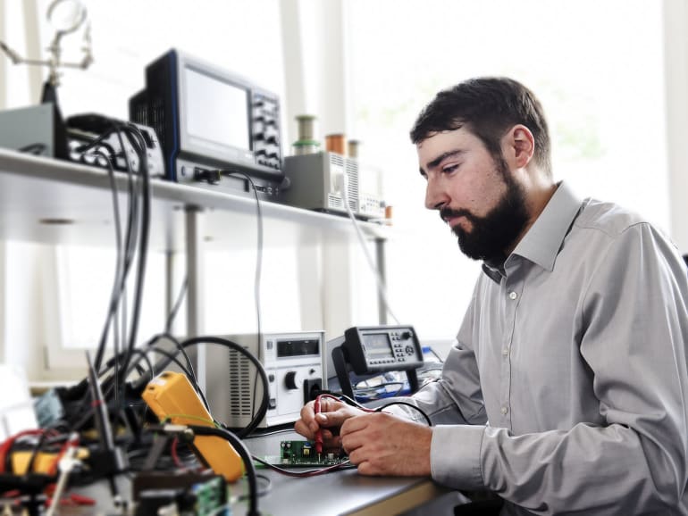 Besonders gut gefällt mir die abwechslungsreiche Arbeit, welche nicht nur am PC stattfindet. Auch Tätigkeiten im Labor bei Messungen und Produktprüfungen. Marcel Garcia Ingenieur Elektronikentwicklung