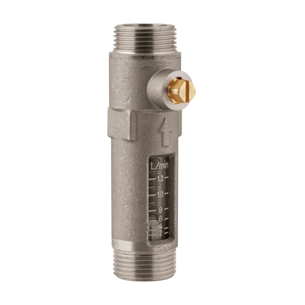 Bilder 3 Zurück Durchflussmesser DFM 15-2M | 80963 Durchflussmesser DFM 15-2M Lagerware Betriebsanleitung Benefits integrierter Kugelhahn zum Einstellen und Absperrendirekte Anzeige des Durchflusses in l/mineinregulieren ohne Diagramm, Tabelle oder Messgerätlieferbar mit vielen Anschlussvarianten Anwendung Zum hydraulischen Abgleich und zur Durchflusskontrolle in Heiz-/Kühlsystemen, Klima- und Solaranlagen sowie in der Geothermie. DFM ermöglicht ein einfaches Einregulieren der Anlage oder Anlagenteile ohne Diagramme, Tabellen oder Messgeräte. Geeignet für Heiz- und Kühlwasser sowie für Wassergemische mit handelsüblichen Korrosions- und Frostschutzzusätzen. Beschreibung Kompakter Durchflussmesser mit Anzeigeskala und Kugelhahn zur Absperrung und Einregulierung. Der Einbau in Leitungen kann waagerecht, schräg oder senkrecht erfolgen. Die Einregulierung ist mittels Schraubendreher an der Einstellschraube vorzunehmen. Die Ablesemarke entspricht der Unterkante des Schwimmerkörpers. Hydraulisch korrekt abgeglichene Anlagen sorgen für eine optimale Energieverteilung und den wirtschaftlichen Betrieb der Anlage nach der gesetzlichen Energieeinsparverordnung. Technische Daten Downloads Technische Daten Temperatureinsatzbereichmax. 120 °C, kurzzeitig 160 °CBetriebsdruckmax. 10 barMessprinzipSchwebekörper mit GegenfederMessbereichsiehe BestelltabelleNennweiteDN 15GehäuseMessing, vernickeltAnschlussG¾ AG x G¾ AGEinbaulagewaagerecht, schräg oder senkrechtOptionenandere Nennweitenandere Anschlüsseandere Messbereiche Downloads Durchflussmesser DFM Betriebsanleitungen PDF Herunterladen