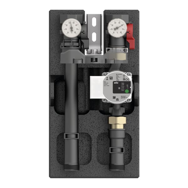Bilder 2 Zurück Heizungspumpengruppe | 77337 Heizungspumpengruppe PrimoTherm® C 130-1 DN20 Lagerware Betriebsanleitung Benefits vormontierte, dichtheitsgeprüfte und wärmegedämmte Baugruppemodulares System mit Vorlauf wahlweise links oder rechtseinfache, schnelle Montagemit Hocheffizienz-Pumpe Klasse Aförderfähig im Programm Heizungsoptimierung (BAFA) Anwendung Heizungspumpengruppe zur Verwendung in ungemischten Heizkreisen, speziell auch zur Speicherladung. Sie bildet die Verbindung zwischen Heizkessel und Rohrleitungssystem. Beschreibung Komplette, fest vormontierte und auf Dichtheit geprüfte Heizungspumpengruppe aus hochwertigem Polymerwerkstoff mit allen erforderlichen Funktionsbauteilen, formschlüssiger Wärmedämmung und Wandbefestigung.Der Vorlaufstrang besteht aus:Absperrventil mit Thermometeraufnahme (roter Handgriff)Thermometer Vorlauf (5 bis 80 °C)Längenausgleichsrohr KunststoffGeeignet für die Verwendung von Umwälzpumpen DN 20 mit G1 x 130 mmDer Rücklaufstrang besteht aus:Absperrventil mit Thermometeraufnahme (schwarzer Handgriff)Thermometer Rücklauf (5 bis 80°C)SchwerkraftbremseLängenausgleichsrohr Pumpe / Mischer Kunststoff Technische Daten Downloads Technische Daten Achsabstand 90 mmSystemanschlüsseKessel: G1 AGHeizkreis: G1 IGTemperatureinsatzbereichMedium: max. 60 °C bei 6 bar,max. 70 °C bei 5 bar,max. 90 °C bei 3 barNenngrößeDN 20Kvs-Wert5.7 m³/hWärmedämmungPolypropylen EPPMaßeB x H x T: 189 x 335 x 240 mmUmwälzpumpeWilo Para 15-130/6-43/SC-12Baulänge130 mmSchutzartIP 44 (EN 60529)VersorgungsspannungAC 230 V, 50 HzEnergieeffizienzklasseALeistungsaufnahmeWilo Para 15-130/6-43/SC-12: 3 − 43 kWFörderhöheWilo Para 15-130/6-43/SC-12: max. 6.7 mFördermengeWilo Para 15-130/6-43/SC-12: max. 3.2 m³/hProportionaldruckgeregelt1 - 1Konstantdruckgeregelt1 - 1Feste Drehzahl1 - 1 Downloads Heizungspumpengruppe PrimoTherm® C Betriebsanleitungen Haustechnik PDF Herunterladen