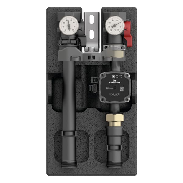Bilder 2 Zurück Heizungspumpengruppe | 77338 Heizungspumpengruppe PrimoTherm® C 130-1 DN20 Lagerware Betriebsanleitung Benefits vormontierte, dichtheitsgeprüfte und wärmegedämmte Baugruppemodulares System mit Vorlauf wahlweise links oder rechtseinfache, schnelle Montagemit Hocheffizienz-Pumpe Klasse Aförderfähig im Programm Heizungsoptimierung (BAFA) Anwendung Heizungspumpengruppe zur Verwendung in ungemischten Heizkreisen, speziell auch zur Speicherladung. Sie bildet die Verbindung zwischen Heizkessel und Rohrleitungssystem. Beschreibung Komplette, fest vormontierte und auf Dichtheit geprüfte Heizungspumpengruppe aus hochwertigem Polymerwerkstoff mit allen erforderlichen Funktionsbauteilen, formschlüssiger Wärmedämmung und Wandbefestigung.Der Vorlaufstrang besteht aus:Absperrventil mit Thermometeraufnahme (roter Handgriff)Thermometer Vorlauf (5 bis 80 °C)Längenausgleichsrohr KunststoffGeeignet für die Verwendung von Umwälzpumpen DN 20 mit G1 x 130 mmDer Rücklaufstrang besteht aus:Absperrventil mit Thermometeraufnahme (schwarzer Handgriff)Thermometer Rücklauf (5 bis 80°C)SchwerkraftbremseLängenausgleichsrohr Pumpe / Mischer Kunststoff Technische Daten Downloads Technische Daten Achsabstand 90 mmSystemanschlüsseKessel: G1 AGHeizkreis: G1 IGTemperatureinsatzbereichMedium: max. 60 °C bei 6 bar,max. 70 °C bei 5 bar,max. 90 °C bei 3 barNenngrößeDN 20Kvs-Wert5.7 m³/hWärmedämmungPolypropylen EPPMaßeB x H x T: 189 x 335 x 240 mmUmwälzpumpeGrundfos UPM3 Auto 15-70/130Baulänge130 mmSchutzartIP 44 (EN 60529)VersorgungsspannungAC 230 V, 50 HzEnergieeffizienzklasseALeistungsaufnahmeGrundfos UPM3 Auto 15-70/130: 5 − 52 kWFörderhöheGrundfos UPM3 Auto 15-70/130: max. 7 mFördermengeGrundfos UPM3 Auto 15-70/130: max. 3.75 m³/hProportionaldruckgeregelt1 - 1Konstantdruckgeregelt1 - 1Feste Drehzahl1 - 1 Downloads Heizungspumpengruppe PrimoTherm® C Betriebsanleitungen Haustechnik PDF Herunterladen