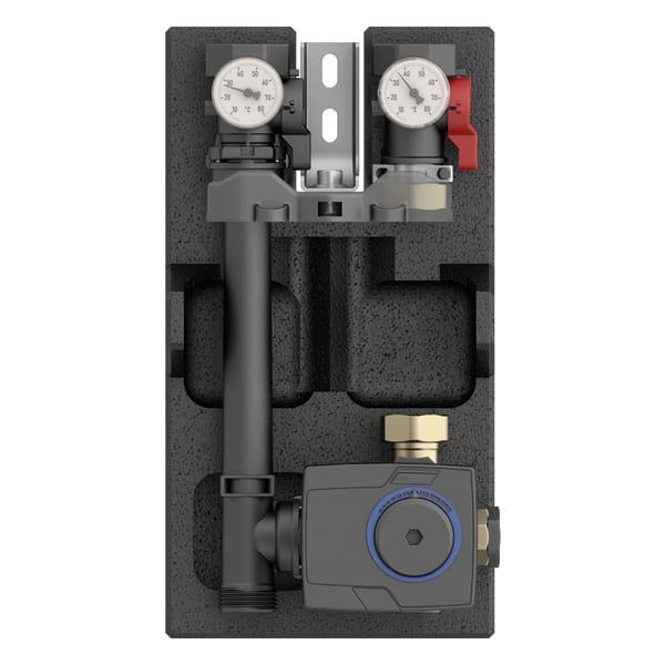 Bilder 2 Zurück Heizungspumpengruppe | 77339 Heizungspumpengruppe PrimoTherm® C 130-2 DN20 KVS Vario Lagerware Betriebsanleitung Benefits vormontierte, dichtheitsgeprüfte und wärmegedämmte Baugrupperobuster Mischer mit einstellbarem Kvs-Wert von 3,2 bis 5,2 m³/hKvs-Wert-Anpassung auch im Betrieb (unter Systemdruck) jederzeit möglichförderfähig im Programm Heizungsoptimierung (BAFA) Anwendung Heizungspumpengruppe zur Verwendung in gemischten Heizkreisen. Mit dem 3-Wege-Mischer und dem Stellmotor kann die Vorlauftemperatur durch Beimischung des Rücklaufes auf eine gewünschte Temperatur geregelt werden. Der neue Mischer mit einstellbarem Kvs-Wert bietet dem Fachhandwerk die maximale Flexibilität bei der Anpassung an die jeweilige Regelanforderung der Anlage. Somit kann eine hohe Varianz an Mischer- bzw. Pumpengruppen-Ausführungen mit nur einer Variante abgedeckt werden. Beschreibung Komplette, fest vormontierte und auf Dichtheit geprüfte Heizungspumpengruppe aus hochwertigen Polymerwerkstoffen mit allen erforderlichen Funktionsbauteilen, formschlüssige Wärmedämmung inklusive.Der Vorlaufstrang besteht aus:Absperrventil mit Thermometeraufnahme (roter Handgriff)Thermometer Vorlauf (5 bis 80 °C)3-Wege-Mischventil ARV KVS Vario mit einstellbarem Kvs-Wert und ProClick-AdaptersystemWartungsfreier, lautloser Stellmotor ARM 343 (6 Nm, 120 s, AC 230 V) mit 0/90°-Drehwinkel, Drehrichtungsanzeige, Umschalttaste „Hand-/Automatikbetrieb“ und ProClick-AdaptersystemFühlerclip für den Anschluss eines Vorlauffühlers mit Ø 6 mmGeeignet für die Verwendung von Umwälzpumpen DN 20 mit G1 x 130 mm.Der Rücklaufstrang besteht aus:Absperrventil mit Thermometeraufnahme (schwarzer Handgriff)Thermometer Rücklauf (5 bis 80 °C)SchwerkraftbremseLängenausgleichsstück Pumpe / Mischer Kunststoff Technische Daten Downloads Technische Daten Achsabstand 90 mmSystemanschlüsseKessel: G1 AGHeizkreis: G1 IGTemperatureinsatzbereichMedium: max. 60 °C bei 6 bar,max. 70 °C bei 5 bar,max. 90 °C bei 3 barNenngrößeDN 20Kvs-Wertverstellbar: 3,2 (3,5) – 3,75 (4,5) – 4,6 (7) – 5,0 (8,5) – 5,2 (9) m3/h() = Einstellwert am MischventilLeckrateMischventil ARV KVS Vario: < 0,1 % vom Kvs-Wert (bis Δp 0,5 bar < 0,2 % vom Kvs-Wert)WärmedämmungPolypropylen EPPMaßeB x H x T: 189 x 335 x 240 mmProportionaldruckgeregelt0 - 0Konstantdruckgeregelt0 - 0Feste Drehzahl0 - 0 Downloads PrimoTherm® C 130-2 DN 20 KVS-Vario Katalog-Produktinformationen Haustechnik PDF Herunterladen Heizungspumpengruppe PrimoTherm® C Betriebsanleitungen Haustechnik PDF Herunterladen