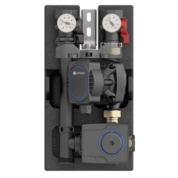 Bilder 2 Zurück Heizungspumpengruppe | 77340 Heizungspumpengruppe PrimoTherm® C 130-2 DN20 KVS Vario Lagerware Betriebsanleitung Benefits vormontierte, dichtheitsgeprüfte und wärmegedämmte Baugrupperobuster Mischer mit einstellbarem Kvs-Wert von 3,2 bis 5,2 m³/hKvs-Wert-Anpassung auch im Betrieb (unter Systemdruck) jederzeit möglichförderfähig im Programm Heizungsoptimierung (BAFA) Anwendung Heizungspumpengruppe zur Verwendung in gemischten Heizkreisen. Mit dem 3-Wege-Mischer und dem Stellmotor kann die Vorlauftemperatur durch Beimischung des Rücklaufes auf eine gewünschte Temperatur geregelt werden. Der neue Mischer mit einstellbarem Kvs-Wert bietet dem Fachhandwerk die maximale Flexibilität bei der Anpassung an die jeweilige Regelanforderung der Anlage. Somit kann eine hohe Varianz an Mischer- bzw. Pumpengruppen-Ausführungen mit nur einer Variante abgedeckt werden. Beschreibung Komplette, fest vormontierte und auf Dichtheit geprüfte Heizungspumpengruppe aus hochwertigen Polymerwerkstoffen mit allen erforderlichen Funktionsbauteilen, formschlüssige Wärmedämmung inklusive.Der Vorlaufstrang besteht aus:Absperrventil mit Thermometeraufnahme (roter Handgriff)Thermometer Vorlauf (5 bis 80 °C)3-Wege-Mischventil ARV KVS Vario mit einstellbarem Kvs-Wert und ProClick-AdaptersystemWartungsfreier, lautloser Stellmotor ARM 343 (6 Nm, 120 s, AC 230 V) mit 0/90°-Drehwinkel, Drehrichtungsanzeige, Umschalttaste „Hand-/Automatikbetrieb“ und ProClick-AdaptersystemFühlerclip für den Anschluss eines Vorlauffühlers mit Ø 6 mmGeeignet für die Verwendung von Umwälzpumpen DN 20 mit G1 x 130 mm.Der Rücklaufstrang besteht aus:Absperrventil mit Thermometeraufnahme (schwarzer Handgriff)Thermometer Rücklauf (5 bis 80 °C)SchwerkraftbremseLängenausgleichsstück Pumpe / Mischer Kunststoff Technische Daten Downloads Technische Daten Achsabstand 90 mmSystemanschlüsseKessel: G1 AGHeizkreis: G1 IGTemperatureinsatzbereichMedium: max. 60 °C bei 6 bar,max. 70 °C bei 5 bar,max. 90 °C bei 3 barNenngrößeDN 20Kvs-Wertverstellbar: 3,2 (3,5) – 3,75 (4,5) – 4,6 (7) – 5,0 (8,5) – 5,2 (9) m3/h() = Einstellwert am MischventilLeckrateMischventil ARV KVS Vario: < 0,1 % vom Kvs-Wert (bis Δp 0,5 bar < 0,2 % vom Kvs-Wert)WärmedämmungPolypropylen EPPMaßeB x H x T: 189 x 335 x 240 mmUmwälzpumpeAFRISO APH 160 15-7/130Baulänge130 mmSchutzartIP 44 (EN 60529)VersorgungsspannungAC 230 V, 50 HzEnergieeffizienzklasseALeistungsaufnahmeAFRISO APH 160 15-7/130: 4 − 45 kWFörderhöheAFRISO APH 160 15-7/130: max. 7 mFördermengeAFRISO APH 160 15-7/130: max. 3.5 m³/hProportionaldruckgeregelt1 - 1Konstantdruckgeregelt1 - 1Feste Drehzahl1 - 1 Downloads PrimoTherm® C 130-2 DN 20 KVS-Vario Katalog-Produktinformationen Haustechnik PDF Herunterladen Heizungspumpengruppe PrimoTherm® C Betriebsanleitungen Haustechnik PDF Herunterladen