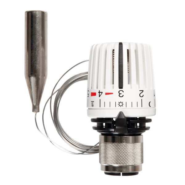 Dieses Produkt ist in Ihrem Land nicht verfügbar Bilder 1 Zurück Thermostat-Regelkopf 323 KD F N mit Fernfühler und Halter, kompatibel Baureihe RA | 362_202-130 Thermostat-Regelköpfe Fertigungsware Benefits mit Flüssigkeitsfühlereinstellbare SparstellungRegelbereich begrenz- und blockierbar mit Begrenzerringpassend ohne Adapter auf viele Ventilheizkörper Anwendung Zur Einstellung und Regelung der Raumtemperatur am Heizkörper. Version 323 passend für Ventilunterteil-Baureihe Vario, VarioQ, Vario-DP, Thermostat-Kombiblöcke Vario THK und Ventilheizkörper mit integriertem Ventileinsatz mit Anschlussgewinde M30x1,5 mm. Version 323 passend für Ventilausführungen mit Gampper-Klemmanschluss (Ventilunterteile bis Baujahr 1998). Version 323 KD passend für Danfoss-Klemmanschluss (kompatibel Baureihe RA). Beschreibung Thermostat-Regelkopf mit Flüssigkeitsfühler, bestehend aus Handrad mit Skala und Sockel in verschiedenen Farbausführungen (siehe Bestelltabelle). Optional als Ausführung mit Fernfühler oder Fernversteller. Mit dem Handrad wird die gewünschte Raumtemperatur eingestellt. Der Temperaturfühler prüft kontinuierlich die Raumtemperatur, vergleicht die Messwerte mit dem eingestellten Wert und reguliert über Öffnen und Schließen des Ventils den Durchfluss, bis der eingestellte Wert erreicht ist. Regelbereich begrenz- und blockierbar mit Begrenzerring. Mit einstellbarer Temperatur-Merkstellung (Sparstellung) über Memory-Clip (hilfreich für Menschen mit Sehbehinderung). Frostschutzstellung markiert mit Froststern.Behördenausführung ohne Nullstellung. Regulierung nach unten nur bis zum Froststern möglich. Der Einstellbereich ist bei der Erstmontage fix zu wählen. Eine zweigeteilte, nicht abnehmbare Schutzkappe verhindert die Demontage und Veränderung der gewählten Einstellung. Schutzkappe gesichert durch Schraube.