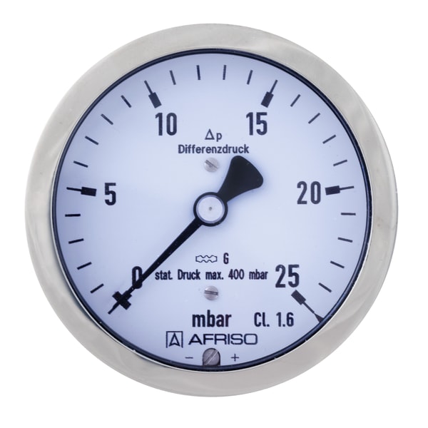 Bilder 6 KP63Dif D911 Kapselfeder-Standardmanometer für Differenzdruck Typ D9 Ausführungen Betriebsanleitung Video Benefits Messung kleinster Differenzdrückerobuste Ausführungstatische Drücke bis 400 mbardirekte Anzeige des Differenzdruckesviele kundenspezifische Ausführungen lieferbar Anwendung Zur Differenzdruckmessung bei nicht aggressiven gasförmigen, trockenen Medien. Besonders geeignet zur Filterverlustmessung in der Klima- und Lüftungstechnik.! Bei Medium Gas oder Dampf unbedingt Tabelle „Auswahlkriterien gemäß EN 837-2“ (s. Anhang) beachten! Ausführungen Technische Daten Technische Zeichnungen Downloads Video Ausführungen Gehäuse-⌀GehäuseGenauigkeitsklasseAnschlussAusrichtungAnzeigebereichTypArt.-Nr.KP63DifD91163 mmEdelstahl 3044,02 x G¼B0/16 mbarKP63Dif D91135515911KP63DifD91163 mmEdelstahl 3041,62 x G¼B0/25 mbarKP63Dif D91135516911KP63DifD91163 mmEdelstahl 3041,62 x G¼B0/40 mbarKP63Dif D91135517911KP63DifD91163 mmEdelstahl 3041,62 x G¼B0/60 mbarKP63Dif D91135518911KP63DifD91163 mmEdelstahl 3041,62 x G¼B0/100 mbarKP63Dif D91135519911KP63DifD91163 mmEdelstahl 3041,62 x G¼B0/160 mbarKP63Dif D91135520911KP63DifD91163 mmEdelstahl 3041,62 x G¼B0/250 mbarKP63Dif D91135521911KP63DifD91163 mmEdelstahl 3041,62 x G¼B0/400 mbarKP63Dif D91135522911 Lagerware Fertigungsware Technische Daten TypD9Nenngröße63 - 63FunktionDer „Plus“-Druck (= hoher Druck) gelangt in das Innere der Kapselfeder. Der „Minus“-Druck (= niedriger Druck) gelangt in das Innere des druckdichten Gehäuses. Die so entstehende Druckdifferenz bewirkt eine Verformung der Kapselfeder und erzeugt den Messweg. Dieser wird auf das Zeigerwerk übertragen. Der Differenzdruck wird mit einem Zeiger direkt angezeigt.Genauigkeitsklasse (EN 837-3/6)4,0Anzeigebereiche (EN 837-3/5)siehe BestelltabelleVerwendungsbereichruhende Belastung: Skalenendwertdynamische Belastung: 0,9 x SkalenendwertÜberdrucksicherheitSkalenendwertmaximaler statischer Druck400 mbarTemperatureinsatzbereichMedium: max. 60 °CUmgebung: -20/+60 °CTemperaturverhaltenAnzeigefehler bei Abweichung von der Normaltemperatur 20 °C am Messsystem:bei Temperaturzunahme ca. ± 0,6 %/10 K,bei Temperaturabnahme ca. ± 0,6 %/10 Kvom jeweiligen SkalenendwertSchutzartIP 66 (EN 60529) Standardausführung AnschlussMessing, axial, parallel untereinanderMessglied (mediumberührt)Kapselfeder, CuBe-LegierungZeigerwerk (mediumberührt)MessingNullpunktkorrekturfrontseitigDichtung (mediumberührt)NBR (Perbunan)Zifferblatt (mediumberührt)Aluminium, schwarzSkalierung schwarzZeiger (mediumberührt)Aluminium, schwarzGehäuse (mediumberührt)Edelstahl 304BajonettringEdelstahl 304Sichtscheibe (mediumberührt)Kunststoff (PMMA) Technische Zeichnungen Für Detailansichten, Zusatzinformationen und Maßtabellen bitte auf das jeweilige Bild klicken. NG 63 – Anschluss axial Maße (mm)NGbcD1D2e2gGs2SW6330,5268622053G¼B614 Downloads Montage Manometer Betriebsanleitungen Industrietechnik PDF Herunterladen Rohrfeder-, Kapselfeder-, Plattenfeder-, Membranfedermanometer für Differenzdruck Betriebsanleitungen Industrietechnik PDF Ukrainisch Deutsch Deutsch AFRISO_EU-KONFORMITAETSERKLAERUNG_DRUCKGERAETE_DE.PDF Prüfbescheiningungen Industrietechnik PDF Herunterladen Video
