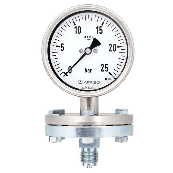 Bilder 5 Zurück Plattenfeder-Standardmanometer PF100 | 85912401 Plattenfeder-Standardmanometer Typ D4 Fertigungsware Betriebsanleitung Video Info Anzeigebereich0/1.6 barGehäuse-⌀ (Nenngröße)100 mmGenauigkeitsklasse1,6NormEN 837-3Art.-Nr.85912401 Benefits für niedrige Druckbereichehohe Überdrucksicherheitrobuste Ausführungoptionale Flanschanschlüsse Anwendung Für gasförmige und flüssige, nicht aggressive Medien. Mit offenem Anschlussflansch auch für viskose und verunreinigte Medien. Bei Medium Gas oder Dampf unbedingt Tabelle „Auswahlkriterien gemäß EN 837-2“ (s. Anhang) beachten! Technische Daten Technische Zeichnungen Downloads Video Technische Daten TypD4Nenngröße100 - 100Genauigkeitsklasse (EN 837-3/6)1,6Anzeigebereiche (EN 837-3/5)siehe BestelltabelleVerwendungsbereichruhende Belastung: Skalenendwertdynamische Belastung: 0,9 x SkalenendwertÜberdrucksicherheit≥ 0,6 bar: mind. 5 x FSTemperatureinsatzbereichMedium: max. 100 °CUmgebung: -20/+60 °CTemperaturverhaltenAnzeigefehler bei Abweichung von der Normaltemperatur 20 °C am Messsystem:bei Temperaturzunahme ca. ± 0,8 %/10 K,bei Temperaturabnahme ca. ± 0,8 %/10 Kvom jeweiligen SkalenendwertSchutzartIP 54 (EN 60529) Standardausführung AnschlussStahl, radialG½B, SW22 (EN 837-3/7.3)unterer MessflanschStahl, verzinktoberer MessflanschEdelstahl 304MessgliedPlattenfederMessflansch: Edelstahl 316 LDichtungNBR (Perbunan)ZeigerwerkMessingZifferblattAluminium, weißSkalierung schwarzZeigerAluminium, schwarzGehäuseEdelstahl 304, mit DruckentlastungsöffnungBajonettringEdelstahl 304SichtscheibeInstrumentenglas Technische Zeichnungen Für Detailansichten, Zusatzinformationen und Maßtabellen bitte auf das jeweilige Bild klicken. Anschluss radial, Messflansch ⌀ 100 Maße (mm)NGab∅cc1c2DGhSW10020556320100G1½B12722 Downloads Montage Manometer Betriebsanleitungen Industrietechnik PDF Herunterladen Rohrfeder-, Kapselfeder-, Plattenfeder-, Membranfedermanometer für Differenzdruck Betriebsanleitungen Industrietechnik PDF Ukrainisch Deutsch Deutsch AFRISO_EU-KONFORMITAETSERKLAERUNG_DRUCKGERAETE_DE.PDF Prüfbescheiningungen Industrietechnik PDF Herunterladen Video