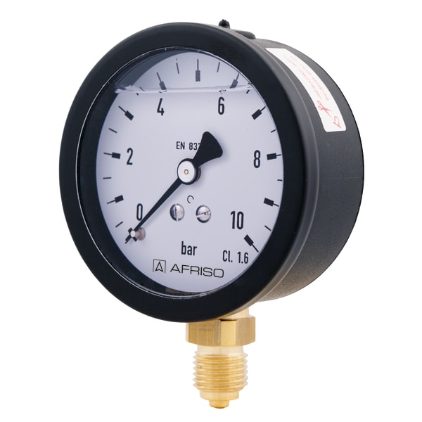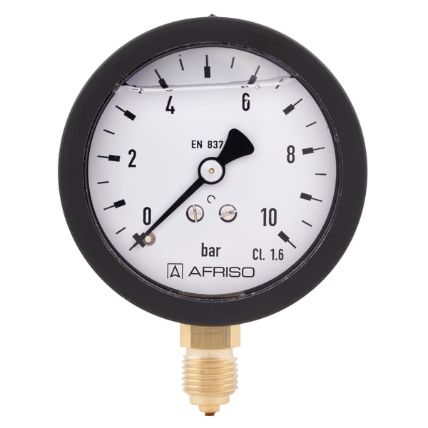 Bilder 5 RF50Gly D601 Rohrfeder-Glyzerinmanometer Typ D6 Ausführungen Betriebsanleitung Video Info Gehäuse-⌀ (Nenngröße)50 mmAnschlussG¼BAusrichtungradialGenauigkeitsklasse1,6NormEN 837-1 Benefits einsetzbar bei starken Vibrationen und hohen dynamischen Druckbelastungenlängere Lebensdauer durch geringeren Verschleiß und Korrosionsschutz des Messsystemskein Beschlagen der Sichtscheibe von innen bei Einsatz im Freien Anwendung Für gasförmige und flüssige, nicht hochviskose und nicht kristallisierende Medien, die Kupferlegierungen nicht angreifen. Für Messstellen mit starken Vibrationen und hohen dynamischen Druckbelastungen. Ausführungen Technische Daten Technische Zeichnungen Downloads Video Ausführungen AnzeigebereichEinbauartTypArtikelnummer-1/0 bardirektRF50Gly D60185051601-1/0.6 bardirektRF50Gly D60185052601-1/+1.5 bardirektRF50Gly D60185053601-1/+3 bardirektRF50Gly D60185054601-1/+5 bardirektRF50Gly D60185055601-1/+9 bardirektRF50Gly D60185056601-1/+15 bardirektRF50Gly D601850576010/0.6 bardirektRF50Gly D601850596010/1 bardirektRF50Gly D601850606010/1.6 bardirektRF50Gly D601850616010/2.5 bardirektRF50Gly D601850626010/4 bardirektRF50Gly D601850636010/6 bardirektRF50Gly D601850646010/10 bardirektRF50Gly D601850656010/16 bardirektRF50Gly D601850666010/25 bardirektRF50Gly D601850676010/40 bardirektRF50Gly D601850686010/60 bardirektRF50Gly D601850696010/100 bardirektRF50Gly D601850706010/160 bardirektRF50Gly D601850716010/250 bardirektRF50Gly D601850726010/400 bardirektRF50Gly D60185073601 Lagerware Fertigungsware Technische Daten TypD6Nenngröße50 - 50Genauigkeitsklasse (EN 837-1/6)1,6Anzeigebereiche (EN 837-1/5)siehe BestelltabelleVerwendungsbereichruhende Belastung: ¾ x Skalenendwertdynamische Belastung: ⅔ x Skalenendwertkurzzeitig: SkalenendwertTemperatureinsatzbereichMedium: max. 60 °CUmgebung: -20/+60 °CSchutzartIP 54 (EN 60529) bei Gehäuseentlüftung (≤ 25 bar) Standardausführung AnschlussMessing, radialMessgliedRohrfeder, Kupferlegierung≤ 60 bar: Kreisformfeder> 60 bar: SchraubenformfederZeigerwerkMessingZifferblattNG 50: Aluminium, weißSkalierung: schwarzZeigerNG 50: Aluminium, schwarzGehäuseNG 50: Polyamid, schwarzmit DruckentlastungsöffnungBördelringNG 50: Aluminium, schwarzSichtscheibeNG 50: KunststoffFüllflüssigkeitGlyzerin (99,5 %) Technische Zeichnungen Für Detailansichten, Zusatzinformationen und Maßtabellen bitte auf das jeweilige Bild klicken. NG 50/63 – Anschluss radial Maße (mm)NGab∅cc1c2DGhsSW501231,5521353G¼B47514631032521368G¼B53714 Downloads AFRISO_EU-KONFORMITAETSERKLAERUNG_DRUCKGERAETE_DE.PDF Prüfbescheiningungen Industrietechnik PDF Herunterladen Montage Manometer Betriebsanleitungen Industrietechnik PDF Herunterladen Rohrfeder-, Kapselfeder-, Plattenfeder-, Membranfedermanometer für Differenzdruck Betriebsanleitungen Industrietechnik PDF Ukrainisch Deutsch Deutsch Rohrfeder-Manometer Katalog-Optionen Haustechnik PDF Englisch Deutsch Video
