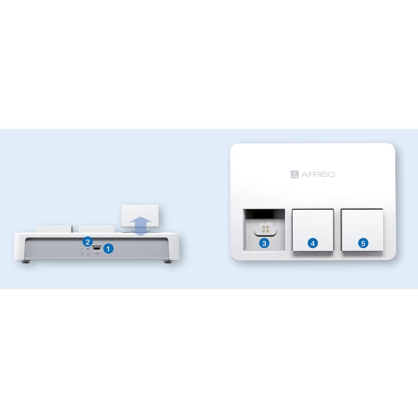 Images 5 Back HG 02 | 78102 AFRISOhome gateway in-stock items Documents Benefits Base module of your building management systemcross-vendor, versatile combinations of products of the EnOcean®, Z-Wave and Zigbee AllianceNo data in the cloudVoice command via Alexa (Amazon Echo) Application For controlling and managing wireless sensors and actuators with EnOcean® and WLAN technology. Events, messages and measured values are documented, and alarms are transmitted to mobile devices (smartphones), if necessary. Ideal as control centre of a smart home system in apartments and single-family homes. Description The AFRISOhome gateway HG 02 is the control centre of your smart home. The app (iOS, Android and WebApp) allows you to add and control a large variety of compatible devices (see whitelist at www.afrisohome.de) to the smart home. A WLAN interface is provided for Internet access and communication with routers and smartphones. All user data and passwords are stored and processed locally on the AFRISOhome gateway. Three slots are available that allow you to integrated additional wireless standards by means of an extension module. Currently, Zigbee and Z-Wave are provided.The free AFRISOhome app for iOS and Android allows for fast and easy operation of the gateway. Smart home systems based on an AFRISOhome gateway excel with virtually unlimited customisability and extensibility. Technical data Downloads Accessories Technical data Operating temperature rangeAmbient: 0/40 °CStorage: -20/+60 °CSupply voltageAC 100 − 240 VFrequency: 50 − 60 HzHousingW x H x D: 205 x 46.1 x 146 mmEnOcean® wirelessFrequency: 868.3 − MHzTransmission power: max. 10 mWRange: 10 − 30 mRange: depending on room arrangement and materials in the buildingScope of deliveryGateway HG 02neutrale Quader als Abdeckkappenpower supply unit Downloads AFRISOhome Gateway HG 02 Manuals PDF Download Accessories Equipment for surface heating and cooling systems Abb. Bezeichnung FT | 78111 AFRISO smart home Abb. Bezeichnung FTM | 78143 FT4F-rw | 78972 WaterSensor con | 78146 WaterSensor eco | 55080 WaterSensor BWS | 55120 ASD 10 | 61245 FTF | 78119 ASD 20 | 61249 AHD | 61550 AHD | 61553 AVD 30 | 75008 FTM 20 TF | 61255 AIS 10 PRO | 79135 DTA 20 E | 52146 DTA 20 E | 52156 CM 10 | 79131 CM 20 | 79133 Accessories and spare parts for AFRISO smart home Abb. Bezeichnung ZigBee | 78103 Z-Wave | 78126 Alarm units, probes and signalling devices Abb. Bezeichnung TDM 51 F | 78089 water shut-off valve WaterControl 01 G¾ | 42570 water shut-off valve WaterControl 01 G1 | 42571 water shut-off valve WaterControl 01 G1¼ | 42575 water shut-off valve WaterControl 01 G1½ | 42576