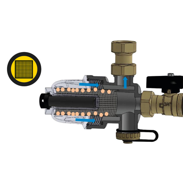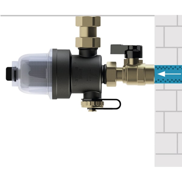 Möglichkeit zur Unterbau-Montage bei wandhängenden Wärmeerzeugern (z. B. Gas-Brennwertgeräte) Einbau im 90°-Winkel <b>Filterfunktion Schritt 2</b> Verschmutzungen werden durch das Edelstahlsieb zurückgehalten Images 3 Back Magnetite sludge separator ADS 110 | 40961 Magnetite sludge separator ADS 110 manufactured goods Documents Benefits effektive Partikelabscheidung mittels Magneteinsatz und Filtersiebideal für wandhängende Gas-Brennwertgeräte mit bis zu 35 kWtransparente Filtertasse für schnelle Sichtkontrollefür beengte Einbausituationen: horizontal, vertikal oder im 90°-Winkel montierbar Technical data Technical drawings Technical data materialHousing: Kunststoff (PA66 mit 30 % Glasfaser)Connection pieces: BrassFilter sieve: Stainless steelOperating pressureat max. 50 °C: 6 barat max. 90 °C: 3 barFlow coefficient Kvs5.3 m³/hFlow ratemax. 2 m³/hOperating temperature rangeAmbient: 0/90 °CCapacity139 mlConnectionsSystem: G¾Filter sieveMesh size: 800 μm (pre-assembled)Magnet insertNeodymium 1.2 TMounting positionwaagerecht, senkrecht, 90°-WinkelScope of deliveryMagnetite sludge separator with 800 µm filter sieveMontagewerkzeug Technical drawings Click the corresponding image for detail views, additional information and dimension tables. Maße (mm) GrößeG¾" x G¾" x G¾"GrößeG¾" x G¾" x G¾"A167F40,5B151,1G40,5C28H44,8D81I106,4E58L66 H: Höhe Regelkopf H: Höhe Regelkopf