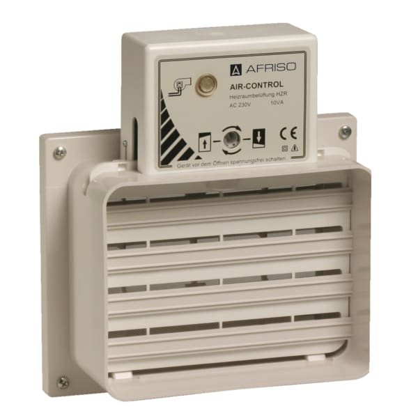 Products Our motto "Technology for Environmental Protection" has long been an inherent part of our product development philosophy and product range. We strive to improve the environment, to make processes which work with greater environmental compatibility and to avoid putting a strain on the environment. We offer you a multitude of innovative solutions, new products and smart concepts. More Informations Industries & Topics Industries & Topics Overview Fuel oil components Fuel oil components Overview Fast and clean oil filter change Avoiding fungal attacks in biofuel More performance with the sintered plastic sieve AFRISO Smart Home AFRISO Smart Home Overview Gateway HG 02 Products Products Overview AFRISOhome App Alexa Smart home applications Smart home applications Overview Leakage security Security Stand-alone applications Stand-alone applications Overview Getting started with AFRIShome Smart Home Craft 4.0 Craft 4.0 Overview OEM-Manifold systems Hydraulic Balancing Hydraulic Balancing Overview VarioQ Vario-DP Tank conversion Hygienic processes AFRISO Smart Home AFRISO Smart Home offers innovative solutions for intelligent home automation. With modern sensors and actuators, you can easily and conveniently control your home. More Informations Service-Center Service-Center Overview Service Contact persons Data exchange formats Catalogs Service-Center Flexible, cost-aware, on schedule, solution-oriented and fast – the AFRISO team always provides the decisive added value. More Informations Training & Events Training & Events Overview Exhibitions Exhibitions Overview SHK+E 2026, Essen IFH Intherm 2026, Nuremberg GET Nord 2026, Hamburg Schulungen & Trainings Schulungen & Trainings Overview Heizen mit flüssigen Brennstoffen Inhouse-Schulung - Heizen mit flüssigen Brennstoffen Inhouse-Schulung Heizölverbraucheranlagen Smart Home Experte Search Domestic technology Equipment for heating systems, boiler rooms and chimneys 69964 Raumluftklappe Air-Control Images 2 Back Air-Control | 69964 Motorised boiler room vent in-stock items Documents Benefits saves heating costs, is reliable and silentsystem or room cannot cool downsturdy, impact-resistant plasticcomplete with accessories for easy installation Application Suitable for installation in basement windows or ventilation ducts for burner-controlled oxygen supply of heating rooms with oil and gas burners of up to 50 kW. Keeps the system or the room from cooling down. Description Burner-controlled motorised boiler room vent, consisting of a robust, impact-resistant plastic housing with injection-moulded mounting flange, a mating flange with a protective grille and a gear motor for actuating the slide. Can also be operated manually; with function indication. Boiler rooms which are equipped with oil- or gas-fired burners must be supplied with a sufficient amount of oxygen (e.g. in accordance with the German FeuVo). This is often achieved by constantly open boiler room windows or by inlet air ducts. The cold air which constantly flows into the boiler room causes the boiler and the water supply as well as the pipes to cool down. As a result, the burner is switched on more frequently and consumes unnecessarily high amounts of fuel.Air-Control is mounted onto the pane and is electrically connected to the boiler thermostat. Air-Control can also be mounted onto air ducts. The window remains closed and keeps the warmth inside. As soon as the boiler temperature drops, the boiler thermostat switches on Air-Control. Opening the vent activates a microswitch which closes the burner circuit. The burner starts to operate only when the motorised boiler room vent is open and is supplied with pre-warmed ambient air in the ignition phase. The motorised boiler room vent remains open during the entire combustion process and provides the boiler room with enough fresh air. The burner switches off when the preset temperature is reached. Air-Control closes automatically. Technical data Downloads Technical data HousingPlastic (ABS)W x H x D: 260 x 300 x 115 mmWeight: 1 kgDegree of protection: IP 20 (EN 60529)Installation openingW x H: 216 x 166 mmCross section fresh air supply 150 cm²Supply voltageAC 230 VContact ratingAC 250 V, 2 ABurner capacitymax. 50 kWSeveral Air-Control units can be installed in the case of larger facilities. Downloads Raumluftklappe Air-Control Manuals PDF Download Related products