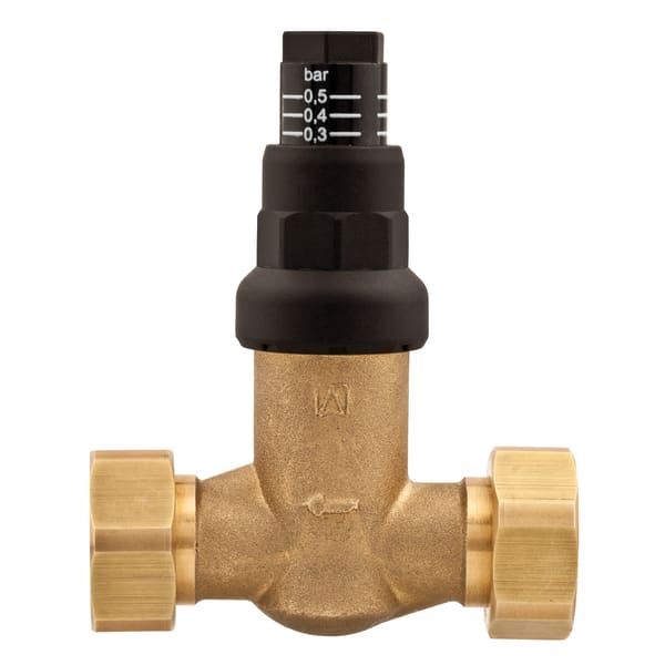Images 1 Back DÜ | 42384 Differential pressure bypass valve manufactured goods Benefits for constant pump pressure in heating systemsReduction of flow noisewith adjustment scaleDifferential pressure fully adjustableeither space-saving angled version or straight version Application For keeping the pump pressure in sealed heating systems as per EN 12828 constant and for reducing flow noise in the heating system. Description Differential pressure bypass valve with directly readable adjustment scale. Housing made of brass. Available as straight version or angled version for space-saving installation. The differential pressure in the heating system at full load is set directly at the bypass valve. If the volume flow is reduced, the valve opens to keep the head of the circulation pump constant. Technical data Technical data Operating temperature rangeMedium: max. 95 °CMedium: short-term 120 °COperating pressuremax. 6 barDifferential pressure0.1/0.5 bar fully adjustableHousingstraight versionMaterial: BrassConnection straight versionscrew connection at both sides, flat-sealing with union nut G¾