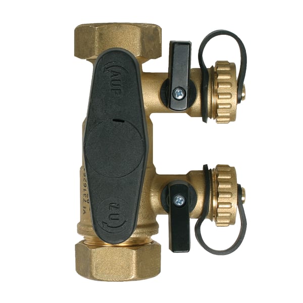 Images 1 Back Filling and flushing unit | 77781 Befüll- und Spüleinrichtung - Solar in-stock items Application For solar systems as filling and flushing unit. With ball valve, two boiler filling and drain valves KFE G¾, process connection G1 with union nut and compression fittings at both ends. Technical data Technical data ConnectionG1, compression fitting at both ends ⌀ 22 mmDimensionsLength: 108 mmHousingBrassKvsPart no.77781 - 77781: