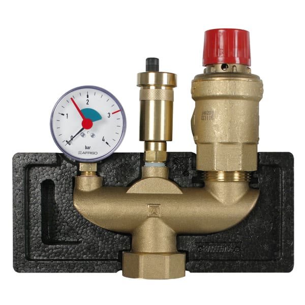 Products Our motto "Technology for Environmental Protection" has long been an inherent part of our product development philosophy and product range. We strive to improve the environment, to make processes which work with greater environmental compatibility and to avoid putting a strain on the environment. We offer you a multitude of innovative solutions, new products and smart concepts. More Informations Industries & Topics Industries & Topics Overview Fuel oil components Fuel oil components Overview Fast and clean oil filter change Avoiding fungal attacks in biofuel More performance with the sintered plastic sieve AFRISO Smart Home AFRISO Smart Home Overview Gateway HG 02 Products Products Overview AFRISOhome App Alexa Smart home applications Smart home applications Overview Leakage security Security Stand-alone applications Stand-alone applications Overview Getting started with AFRIShome Smart Home Craft 4.0 Craft 4.0 Overview OEM-Manifold systems Hydraulic Balancing Hydraulic Balancing Overview VarioQ Vario-DP Tank conversion Hygienic processes AFRISO Smart Home AFRISO Smart Home offers innovative solutions for intelligent home automation. With modern sensors and actuators, you can easily and conveniently control your home. More Informations Service-Center Service-Center Overview Service Contact persons Data exchange formats Catalogs Service-Center Flexible, cost-aware, on schedule, solution-oriented and fast – the AFRISO team always provides the decisive added value. More Informations Training & Events Training & Events Overview Exhibitions Exhibitions Overview SHK+E 2026, Essen IFH Intherm 2026, Nuremberg GET Nord 2026, Hamburg Search Domestic technology Equipment for heating systems, boiler rooms and chimneys KSG Magnum Images 1 KSG Magnum Boiler safety group assembly Variants Documents Benefits time-saving installation with pre-assembled, tightness-tested assemblyVent chamber for collecting and separating the air and the water in the heating systemQuick air vent PrimoVent with two-way venting principle for automatic ventingpressure gauge for heating installations for direct indication of the system pressuresafety valve for protection against overpressureService-friendly: Quick air vent can be replaced without drainingfor heating systems with a capacity of up to 200 / 350 kW Application For sealed heating systems as per EN 12828 with a capacity of up to 200 / 350 kW. Description Complete, pre-assembled, tightness-tested boiler safety group assembly. Consisting of carrier, pressure gauge for indicating the system pressure, quick air vent with aqua stop and diaphragm safety valve MS, in form-fit heat insulation. With self-sealing mounting valve for easy replacement of the quick air vent. Variants Technical data Downloads Variants Heat capacityResponse pressureboiler connectionPart no.Boiler safety group assembly KSG Magnummax. 200 kW 3 barG1¼ IG77627Boiler safety group assembly KSG Magnummax. 350 kW 3 barG1½ female77628 in-stock items manufactured goods Technical data connection boilermax. 200 kW: G1¼ IGOperating temperature rangemax. 120 °CDimensionsW x H x D: 230 x 190 x 105 mmInsulationPolypropylene EPPCarrierBrassDiaphragm safety valve MSInlet x outletmax. 200 kW: G1 x G1¼Seal: PTFE sealing ring, can be rotatedResponse pressure: 3 barPressure gauges for heating installationsRange: 0/4 barDiameter: 63 mmConnection: G¼ bottomquick air vent with aqua stopInput: G⅜Nominal pressure: 12 bar Downloads Kesselsicherungsgruppe KSG Magnum Manuals PDF Download Related products