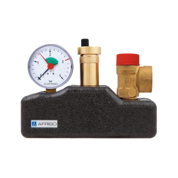 Products Our motto "Technology for Environmental Protection" has long been an inherent part of our product development philosophy and product range. We strive to improve the environment, to make processes which work with greater environmental compatibility and to avoid putting a strain on the environment. We offer you a multitude of innovative solutions, new products and smart concepts. More Informations Industries & Topics Industries & Topics Overview Fuel oil components Fuel oil components Overview Fast and clean oil filter change Avoiding fungal attacks in biofuel More performance with the sintered plastic sieve AFRISO Smart Home AFRISO Smart Home Overview Gateway HG 02 Products Products Overview AFRISOhome App Alexa Smart home applications Smart home applications Overview Leakage security Security Stand-alone applications Stand-alone applications Overview Getting started with AFRIShome Smart Home Craft 4.0 Craft 4.0 Overview OEM-Manifold systems Hydraulic Balancing Hydraulic Balancing Overview VarioQ Vario-DP Tank conversion Hygienic processes AFRISO Smart Home AFRISO Smart Home offers innovative solutions for intelligent home automation. With modern sensors and actuators, you can easily and conveniently control your home. More Informations Service-Center Service-Center Overview Service Contact persons Data exchange formats Catalogs Service-Center Flexible, cost-aware, on schedule, solution-oriented and fast – the AFRISO team always provides the decisive added value. More Informations Training & Events Training & Events Overview Exhibitions Exhibitions Overview SHK+E 2026, Essen IFH Intherm 2026, Nuremberg GET Nord 2026, Hamburg Schulungen & Trainings Schulungen & Trainings Overview Heizen mit flüssigen Brennstoffen Inhouse-Schulung - Heizen mit flüssigen Brennstoffen Inhouse-Schulung Heizölverbraucheranlagen Smart Home Experte Search Domestic technology Equipment for heating systems, boiler rooms and chimneys 77581 KSG Maxi 3bar/100kW Images 2 Back KSG Maxi | 77581 Boiler safety group assembly in-stock items Documents Benefits compact version in form-fit insulationtime-saving installation with pre-assembled, tightness-tested assemblyVent chamber for collecting and separating the air and the water in the heating systemQuick air vent PrimoVent with two-way venting principle for automatic ventingpressure gauge for heating installations for direct indication of the system pressuresafety valve for protection against overpressureService-friendly: Quick air vent can be replaced without drainingfor heating systems with a capacity of up to 100 kW Application For sealed heating systems as per EN 12828 with a capacity of up to 100 kW. Description Complete, pre-assembled, tightness-tested boiler safety group assembly. Consisting of carrier, pressure gauge for indicating the system pressure, quick air vent with aqua stop and diaphragm safety valve MS, in form-fit heat insulation. With self-sealing mounting valve for easy replacement of the quick air vent. Technical data Downloads Technical data connection boilerG1 femaleOperating temperature rangemax. 120 °CDimensionsW x H x D: 183 x 144 x 70 mmInsulationPolypropylene EPPCarrierBrassDiaphragm safety valve MSInlet x outlet: G¾ x G1Seal: PTFE sealing ring, can be rotatedResponse pressure: 3 barPressure gauges for heating installationsRange: 0/4 barDiameter: 63 mmConnection: G¼ bottomquick air vent with aqua stopInput: G⅜Nominal pressure: 12 bar Downloads Kesselsicherungsgruppe KSG, KSG Maxi Manuals PDF Download Related products