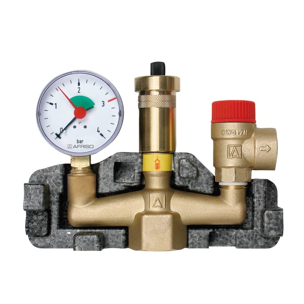 Products Our motto "Technology for Environmental Protection" has long been an inherent part of our product development philosophy and product range. We strive to improve the environment, to make processes which work with greater environmental compatibility and to avoid putting a strain on the environment. We offer you a multitude of innovative solutions, new products and smart concepts. More Informations Industries & Topics Industries & Topics Overview Fuel oil components Fuel oil components Overview Fast and clean oil filter change Avoiding fungal attacks in biofuel More performance with the sintered plastic sieve AFRISO Smart Home AFRISO Smart Home Overview Gateway HG 02 Products Products Overview AFRISOhome App Alexa Smart home applications Smart home applications Overview Leakage security Security Stand-alone applications Stand-alone applications Overview Getting started with AFRIShome Smart Home Craft 4.0 Craft 4.0 Overview OEM-Manifold systems Hydraulic Balancing Hydraulic Balancing Overview VarioQ Vario-DP Tank conversion Hygienic processes AFRISO Smart Home AFRISO Smart Home offers innovative solutions for intelligent home automation. With modern sensors and actuators, you can easily and conveniently control your home. More Informations Service-Center Service-Center Overview Service Contact persons Data exchange formats Catalogs Service-Center Flexible, cost-aware, on schedule, solution-oriented and fast – the AFRISO team always provides the decisive added value. More Informations Training & Events Training & Events Overview Exhibitions Exhibitions Overview SHK+E 2026, Essen IFH Intherm 2026, Nuremberg GET Nord 2026, Hamburg Schulungen & Trainings Schulungen & Trainings Overview Heizen mit flüssigen Brennstoffen Inhouse-Schulung - Heizen mit flüssigen Brennstoffen Inhouse-Schulung Heizölverbraucheranlagen Smart Home Experte Search Domestic technology Equipment for heating systems, boiler rooms and chimneys 77938 KSG 3bar mit Isolierung Images 2 Back KSG | 77938 Boiler safety group assembly in-stock items Documents Benefits compact version in form-fit insulationtime-saving installation with pre-assembled, tightness-tested assemblyVent chamber for collecting and separating the air and the water in the heating systemQuick air vent PrimoVent with two-way venting principle for automatic ventingpressure gauge for heating installations for direct indication of the system pressuresafety valve for protection against overpressureService-friendly: Quick air vent can be replaced without drainingfor heating systems with a capacity of up to 50 kW Application For sealed heating systems as per EN 12828 with a capacity of up to 50 kW. Description Complete, pre-assembled, tightness-tested boiler safety group assembly. Consisting of carrier, pressure gauge for indicating the system pressure, quick air vent with aqua stop and diaphragm safety valve MS, including form-fit insulation. With self-sealing mounting valve for easy replacement of the quick air vent. Technical data Downloads Technical data connection boilerG1 femaleOperating temperature rangemax. 120 °CDimensionsW x H x D: 183 x 144 x 70 mmInsulationPolypropylene EPPCarrierBrassDiaphragm safety valve MSInlet x outlet: G½ x G¾Seal: PTFE sealing ring, can be rotatedResponse pressure: 3 barPressure gauges for heating installationsRange: 0/4 barDiameter: 63 mmConnection: G¼ bottomquick air vent with aqua stopInput: G⅜Nominal pressure: 12 bar Downloads Kesselsicherungsgruppe KSG, KSG Maxi Manuals PDF Download Related products