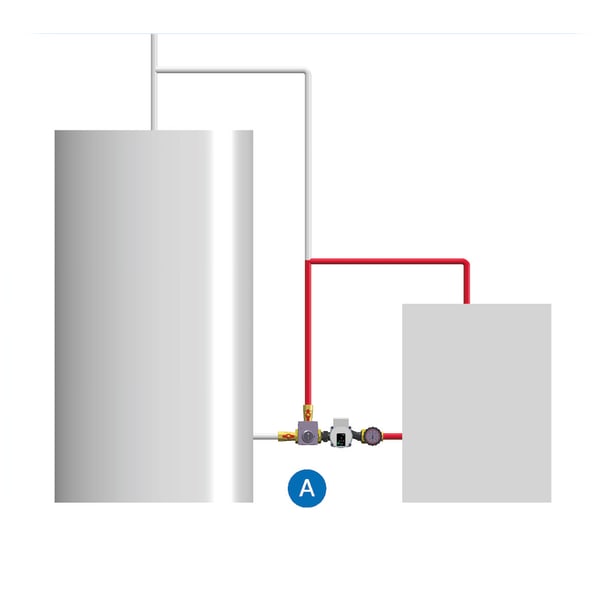 Start mode Mixer closed (B-AB) Images 2 Back Ladeeinheit RTA DN25 | 77057 charging unit manufactured goods Documents Benefits for storage tank charging with solid fuel boilerscompact unit for limited space conditionswith temperature-controlled condensation protection valveavoids deposits in the boiler and in the smoke ventErP-ready: Electronics with increased energy efficiency reduces negative impact on the environment Application Charging unit for direct connection between a solid fuel boiler and a hot water storage tank. The compact design allows for mounting of RTA 60 to the pipes between the solid fuel boiler and the storage tank even if space is limited. Using the charging unit keeps the temperature in the heating boiler above the condensation point in all operating states. This avoids deposits in the boiler and in the smoke vent and increases the efficiency and the service life of the system. The risk of corrosion damage to the boiler and chimney fires resulting from soot deposits is reduced and the heat capacity of the boiler is stratified in the hot water storage tank. For the purpose, the 3-way mixer is controller via an ARM 343 actuator (connection to boiler control) or via an ACT 343 ProClick fixed setpoint controller (actuator not included in scope of delivery, please order separately). Since the flow coefficient Kvs is adjustable, the flow rate can be optimally adapted to the boiler capacity. Description Pre-assembled and tightness-tested assembly with 3-way mixer KVS Vario, storage tank charging unit and three ball valves with connection thread G1 female for system connection.Heat insulation is provided by the customer.Start mode = heating up of boilerWhen the boiler heats up, the mixer is fully closed in the direction of the consumer. The liquid coming from the boiler is recirculated in the small circuit via the bypass, which causes the boiler temperature to increase more rapidly.Mixing modeWhen the adjusted return temperature is reached (e.g. 60 °C), the circuit to the consumer is opened proportionally and the bypass is reduced accordingly. However, the return temperature will not drop below the set temperature.For technical information on suitable actuator and fixed setpoint controller see search: 77812For technical information on suitable fixed setpoint controller see search: 77823Please order actuator and fixed setpoint controller separately. Technical data Downloads Accessories Technical data system connectionsG1 femaleOperating temperature rangeMedium: max. 100 °CSystem pressuremax. 6 barmax.Nominal sizeDN 25System capacitymax. 60 kW max. at a flow rate of 2,600 I/h and a temperature spread of ∆t 20 KCirculation pumpWilo Para 25-180/6-43 Downloads Ladeeinheit RTA 45, RTA 55, RTA 60 DN 25 WP03 G1 Manuals Domestic Technology PDF Download Accessories Equipment for heating systems, boiler rooms and chimneys Abb. Bezeichnung actuator ARM ProClick | 77812 Fixed setpoint controller ACT 343 ProClick | 77823