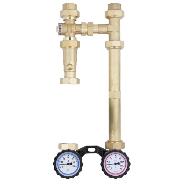 Images 1 Back PrimoTherm® 180-3 DN25 RTA | 77576 Heating pump assembly in-stock items Documents Benefits for increased return temperature with solid fuel boilerswith temperature-controlled condensation protection valvefor reduced amounts of condensate in the combustion processavoids deposits in the boiler and in the smoke venteligible for heating optimization program (BAFA) Application Heating pump assembly for automatically controlling the return temperature of the system water to the heat generator to the value adjusted in the valve. An integrated, temperature-controlled condensation protection valve is the connection between the solid fuel heating system and the heating circuit or the hot water storage tank. Using PrimoTherm® 180-3 RTA keeps the temperature in the heating boiler above the condensation point in all operating states. This avoids deposits in the boiler and in the smoke vent and increases the service life of the system; corrosion damage of the heating boiler and chimney fires caused by soot deposits are avoided. Description Complete, pre-assembled and tightness-tested heating pump assembly with all required functional components, form-fit insulation and wall mounting unit. With an additional mounting bracket, the unit can be mounted in any position (vertically/horizontally).The return line consists of:Combination valve with thermometer in the hand wheel (blue mark, range 0/120 °C)Ball valve above the pump3-way mixing valve with fixed mixing temperature 60 °CSystem connection G1 female (boiler), G1 female (storage)Suitable for pumps DN 25 with G1½ x 180 mm.The flow line (hot) consists of:Combination valve with gravity brake, thermometer in the handle (red mark, range 0/120 °C)Pipe for length compensation with screw connectionSystem connection G1 female (boiler), G1 female (storage) Technical data Downloads Technical data Axis distance 125 mmsystem connectionsBoiler: G1 femaleHeating circuit: G1 femaleOperating temperature rangeMedium: max. 100 °CSystem pressuremax. 10 barmax.Nominal sizeDN 25System capacitymax. 32 kW max. at a flow rate of 1,400 I/h and a temperature spread of ∆t 20 KLeak ratewater-tight between connections A->ABHeat insulationPolypropylene EPPDimensionsW x H x D: 250 x 475 x 153 mmOptionsother opening temperaturesandere Umwälzpumpen Downloads Heizungspumpengruppe PrimoTherm® K 180-1 DN 25, K 180-2 DN 25 Manuals PDF Download