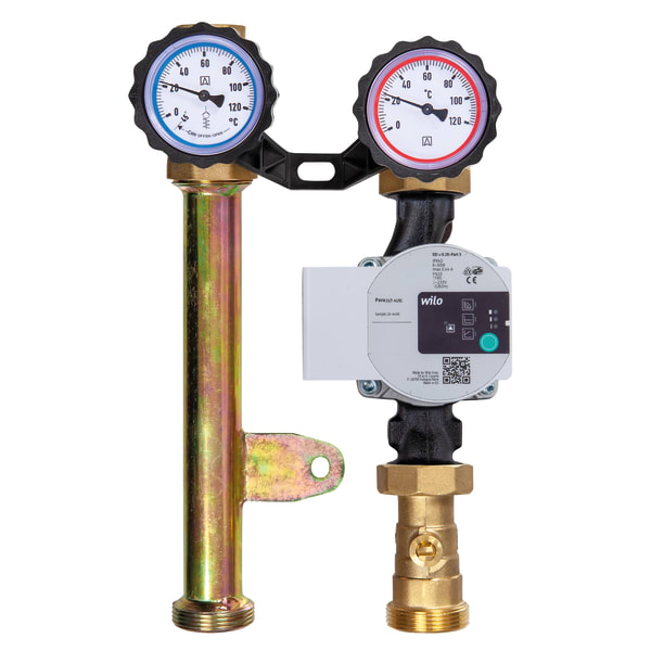 Images 1 Back PrimoTherm® K 180-1 DN25 | 77819 Heating pump assembly manufactured goods Documents Benefits pre-assembled, tightness-tested and heat-insulated assemblymodular system with flow at left or righteasy, fast mountingavailable with high energy efficiency pump class A Application Heating pump assembly for use in non-mixed heating circuits, specially for storage tank charging. It connects the heating boiler and the pipe system. Description Comact, pre-assembled and tightness-tested heating pump assembly with all required functional components, form-fit heat insulation (complies with German Energy Saving Regulation) and wall mounting unit. Adhesive labels with pictograms allow for easy designation of the heating circuits.The flow line consists of: Combination valve with thermometer in the hand wheel (red mark, range 0/120 °C)Ball valve below the pumpSystem connection G1½ male (boiler), G1 female (heating circuit) Suitable for pumps DN 25 with G1½ x 180 mm.The return line consists of:Combination valve with gravity brake, thermometer in the handle (blue mark, range 0/120 °C)Pipe for length compensation with screw connectionSystem connection G1½ male (boiler), G1 female (heating circuit) Technical data Downloads Technical data Axis distance 125 mmsystem connectionsBoiler: G1½ maleHeating circuit: G1 femaleOperating temperature rangeMedium: max. 95 °CMedium: short-term 120 °CSystem pressuremax. 10 barmax.Nominal sizeDN 25Flow coefficient Kvs7.6 m³/hHeat insulationPolypropylene EPPDimensionsW x H x D: 248 x 400 x 155 mmCirculation pumpWilo Para RS 25–180/6Length180 mmDegree of protectionIP 44 (EN 60529)Supply voltageAC 230 V, 50 HzEnergy efficiency classAPower inputWilo Para RS 25–180/6: 3 − 43 Wpumping headWilo Para RS 25–180/6: max. 6.7 mpumping volumeWilo Para RS 25–180/6: max. 3.2 m³/hoperating modes/settingsWilo Para RS 25–180/6: constant volume flow PP (3),konstanter Druck CP (3),constant speed of rotation CC (3)OptionsMixer and actuator, can be retrofittedandere Umwälzpumpen Downloads Heizungspumpengruppe PrimoTherm® K 180-1 DN 25, K 180-2 DN 25 Manuals PDF Download