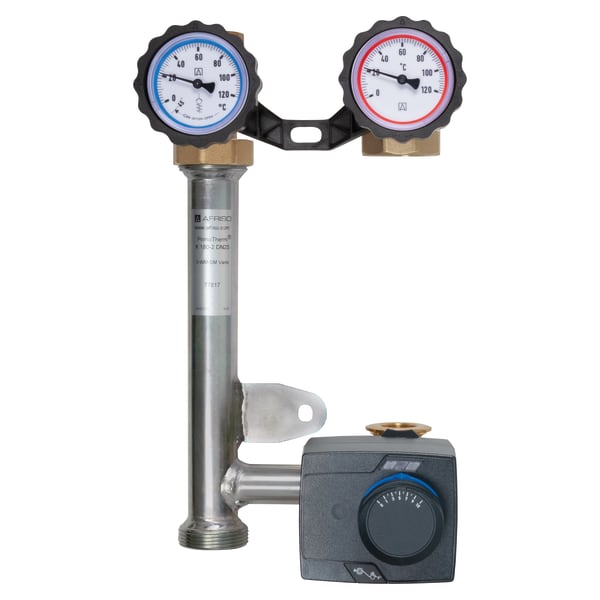 Products Our motto "Technology for Environmental Protection" has long been an inherent part of our product development philosophy and product range. We strive to improve the environment, to make processes which work with greater environmental compatibility and to avoid putting a strain on the environment. We offer you a multitude of innovative solutions, new products and smart concepts. More Informations Industries & Topics Industries & Topics Overview Fuel oil components Fuel oil components Overview Fast and clean oil filter change Avoiding fungal attacks in biofuel More performance with the sintered plastic sieve AFRISO Smart Home AFRISO Smart Home Overview Gateway HG 02 Products Products Overview AFRISOhome App Alexa Smart home applications Smart home applications Overview Leakage security Security Stand-alone applications Stand-alone applications Overview Getting started with AFRIShome Smart Home Craft 4.0 Craft 4.0 Overview OEM-Manifold systems Hydraulic Balancing Hydraulic Balancing Overview VarioQ Vario-DP Tank conversion Hygienic processes AFRISO Smart Home AFRISO Smart Home offers innovative solutions for intelligent home automation. With modern sensors and actuators, you can easily and conveniently control your home. More Informations Service-Center Service-Center Overview Service Contact persons Data exchange formats Catalogs Service-Center Flexible, cost-aware, on schedule, solution-oriented and fast – the AFRISO team always provides the decisive added value. More Informations Training & Events Training & Events Overview Exhibitions Exhibitions Overview SHK+E 2026, Essen IFH Intherm 2026, Nuremberg GET Nord 2026, Hamburg Search ... PrimoTherm® K 180-2 DN25 KVS Vario 77817 PrimoTherm K 180-2 DN25 3WM-SM Vario Images 3 Back PrimoTherm® K 180-2 DN25 KVS Vario | 77817 Heating pump assembly in-stock items Documents Benefits pre-assembled, tightness-tested and heat-insulated assemblywith high-grade, robust mixerVersion with adjustable flow coefficient Kvs from 2.5 to 12 m3/h: Adjustment also possible during operation (under pressure) at any timeavailable with high energy efficiency pump class A Application Heating pump assembly for use in mixed heating circuits. With the 3-way mixer and the actuator, the flow temperature can be adjusted to a desired temperature by adding water from the return. The mixer version with adjustable flow coefficient Kvs offers maximum flexibility in adapting the system to individual control requirements. The flow coefficient Kvs can be modified at any later point in time, even if the system is under pressure. This way, a great variety of mixer/pump assemblies can be covered with a single version. Description Comact, pre-assembled and tightness-tested heating pump assembly with all required functional components, form-fit heat insulation (complies with German Energy Saving Regulation) and wall mounting unit. Adhesive labels with pictograms allow for easy designation.The flow line consists of:Combination valve with thermometer in the hand wheel (red mark, range 0/120 °C)3-way mixing valve with ProClick adapter system, either ARV 325 with flow coefficient Kvs 12 m3/h or KVS Vario with adjustable flow coefficient KvsMaintenance-free, silent actuator ARM 343 (6 Nm, 120 s, AC 230 V) with 0/90° angle of rotation, indication for direction of rotation, selector key "Manual/Automatic Mode" and ProClick adapter systemSystem connection G1½ male (boiler), G1 female (heating circuit) Suitable for pumps DN 25 with G1½ x 180 mm.The return line consists of:Combination valve with gravity brake, thermometer in the handle (blue mark, range 0/120 °C)Pipe for length compensation as T piece for mixer connection with screw connection for system connectionSystem connection G1½ male (boiler), G1 female (heating circuit) Technical data Downloads Technical data Axis distance 125 mmsystem connectionsBoiler: G1½ maleHeating circuit: G1 femaleOperating temperature rangeMedium: max. 95 °CMedium: short-term 120 °CSystem pressuremax. 10 barmax.Nominal sizeDN 25Flow coefficient Kvsadjustable: 2.5 – 4 – 5 – 6 – 8 – 12 m3/hLeak rateMixing valve ARV 325 KVS Vario: < 0.1 % of flow coefficient Kvs (up to ∆p 0.5 bar < 0.2 % of flow coefficient Kvs)Heat insulationPolypropylene EPPDimensionsW x H x D: 248 x 400 x 155 mmCirculation pumpWithout circulation pumpPower inputWithout circulation pump: Without circulation pump: Without circulation pump: operating modes/settingsWithout circulation pump: Downloads Heizungspumpengruppe PrimoTherm® K 180-1 DN 25, K 180-2 DN 25 Manuals PDF Download Related products