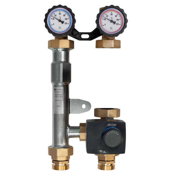 Products Our motto "Technology for Environmental Protection" has long been an inherent part of our product development philosophy and product range. We strive to improve the environment, to make processes which work with greater environmental compatibility and to avoid putting a strain on the environment. We offer you a multitude of innovative solutions, new products and smart concepts. More Informations Industries & Topics Industries & Topics Overview Fuel oil components Fuel oil components Overview Fast and clean oil filter change Avoiding fungal attacks in biofuel More performance with the sintered plastic sieve AFRISO Smart Home AFRISO Smart Home Overview Gateway HG 02 Products Products Overview AFRISOhome App Alexa Smart home applications Smart home applications Overview Leakage security Security Stand-alone applications Stand-alone applications Overview Getting started with AFRIShome Smart Home Craft 4.0 Craft 4.0 Overview OEM-Manifold systems Hydraulic Balancing Hydraulic Balancing Overview VarioQ Vario-DP Tank conversion Hygienic processes AFRISO Smart Home AFRISO Smart Home offers innovative solutions for intelligent home automation. With modern sensors and actuators, you can easily and conveniently control your home. More Informations Service-Center Service-Center Overview Service Contact persons Data exchange formats Catalogs Service-Center Flexible, cost-aware, on schedule, solution-oriented and fast – the AFRISO team always provides the decisive added value. More Informations Training & Events Training & Events Overview Exhibitions Exhibitions Overview SHK+E 2026, Essen IFH Intherm 2026, Nuremberg GET Nord 2026, Hamburg Search Domestic technology Equipment for heating systems, boiler rooms and chimneys PrimoTherm® K 180-2 DN32 KVS Vario Images 3 PrimoTherm® K 180-2 DN32 KVS Vario Heating pump assembly Variants Documents Benefits pre-assembled, tightness-tested and heat-insulated assemblycompact designrobust mixer with adjustable flow coefficient Kvs from 12 to 22 m3/havailable with high energy efficiency pumps class A and high-grade, robust mixer as well as actuatoreasy, fast mounting Application Heating pump assembly for use in non-mixed heating circuits. It connects the heating boiler and the pipe system. With the 3-way mixer KVS Vario and the actuator, the flow temperature can be adjusted to a desired temperature by adding water from the return. PrimoTherm® 180-2 can also be used to increase the return temperature with solid fuel boilers which have a controller for increasing the return temperature. The opening temperature must be set at this controller. Description Complete, pre-assembled and tightness-tested heating pump assembly with all required functional components, form-fit insulation and wall mounting unit.The Flow line consists of:Combination valve with thermometer in the hand wheel (red mark, range 0/120 °C)3-way mixing valve ARV 325 KVS Vario with adjustable flow coefficient Kvs and ProClick adapter systemMaintenance-free, silent actuator ARM 343 (6 Nm, 120 s, AC 230 V) with 0/90° angle of rotation, indication for direction of rotation, selector key "Manual/Automatic Mode" and ProClick adapter systemSystem connection G1¼ female (heating circuit)Suitable for pumps with 2" x 180 mm.The Return line consists of:Combination valve with thermometer in the handle (blue mark, range 0/120 °C), pipe for length compensation with gravity brakeSystem connection (boiler) G2 with screw connection G1¼ female (easy mounting and adapter G1½ AB for use with boiler manifold) Variants Technical data Downloads Variants opening temperature is reachedPumpPart no.Heating pump assembly PrimoTherm® K 180-2 DN32 3WM-SM VarioWithout circulation pump79502Heating pump assembly PrimoTherm® K 180-2 DN32 GP 3WM-SM VarioGrundfos UPM3(K) HYBRID 32-70 180 (N)79505Heating pump assembly PrimoTherm® K 180-2 DN32 WP 3WM-SM VarioWilo Para OPT 30-180/8-60/SC79506 in-stock items manufactured goods Technical data Axis distance 125 mmsystem connectionsBoiler: G1¼ IGHeating circuit: G1¼ IGOperating temperature rangeMedium: max. 110 °CSystem pressuremax. 10 barmax. observe maximum pressure of circulation pumps usedNominal sizeDN 32Flow coefficient Kvsadjustable: 12 – 16 – 22 m3/hLeak rateMixing valve ARV 325 KVS Vario: < 0.7 % of flow coefficient Kvs (up to ∆p 0.5 bar < 0.3 % of flow coefficient Kvs)Heat insulationPolypropylene EPPDimensionsW x H x D: 248 x 480 x 170 mmCirculation pumpWithout circulation pumpPower inputWithout circulation pump: Without circulation pump: Without circulation pump: operating modes/settingsWithout circulation pump: OptionsHigh-efficiency pump Wilo Stratos Para 30 1-7 r. K.andere Umwälzpumpen Downloads Heizungspumpengruppe PrimoTherm® K 180-1 DN 32, K 180-2 DN 32 Manuals Domestic Technology PDF Download Related products