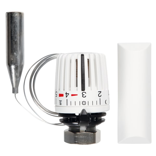 Images 1 323 F thermostat control head Variants Documents Benefits with liquid probeadjustable eco settingAdjustment range can be limited and blocked with ringfits onto many other valve radiators without adapter Application For setting and controlling the room temperature at the radiator. Version 323 suitable for valve body series Vario, VarioQ, Vario-DP, thermostat combination blocks Vario THK, VarioQ-Kombi and valve radiators with integrated valve insert with connection thread M30 x 1.5 mm. Version 320 suitable for valve versions with Gampper clamp connection (valve bodies up to year of manufacture 1998). Version 323 KD suitable for Danfoss clamp connection (compatible series RA). Description Thermostat control head with liquid probe, consisting of hand wheel with scale and base in different colours (see ordering table). Optional version with remote probe or remote adjustment. The desired room temperature is set with the hand wheel. The temperature probe continuously checks the room temperature, compares the measured values to the set value and controls the flow rate by opening or closing the valve to obtain the set value. Adjustment range can be limited and blocked with a ring. With optimum temperature position (eco position) adjustable via memory clip (helpful for persons with visual impairment). Frost protection position with snowflake symbol.Tamper-proof version without zero position. Lower adjustment only to snowflake symbol. The adjustment range must be selected when the valve is mounted for the first time. A protective cap consisting of two parts which cannot be removed prevents disassembly and changes to the selected settings. The protective cap is secured by means of a screw. Variants Downloads Variants in-stock items manufactured goods Downloads Thermostat Regelkopf 323 Manuals PDF Download