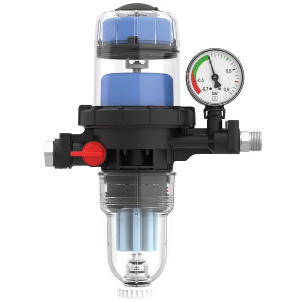 Images 1 FloCo-Top-2CM automatic fuel oil de-aerator Variants Documents Benefits Backflow preventer with integrated pressure relief towards the tankDrain system and drain valve for fast and clean filter changepressure gauge as service indicator (system pressure / filter change)Proofed Barrier (odour-tight)materials resistant to biofuel and biodiesel mixtures with max. 30 % FAMEgreen fuels ready: suitable for use at tank facilities filed with the new paraffinic fuels HVO or GTLwatertight up to 10 m water column - ideal for use in flood hazard areas Application For single-line systems with return line in oil-fired systems for continuous de-aeration. Suitable for fuel oil EL (DIN 51603-1), diesel fuel (EN 590), liquid fuels as per DIN SPEC 51603-6 and DIN/TS 51603-8 as well as biofuel and biodiesel with a maximum of 30 % FAME (EN 14214). This product is therefore ideal for all ecologically upgraded fuel oil consuming systems that use the new paraffinic fuels HVO or GTL as an admixture or 100 %. Also for use in flood hazard areas and flood risk areas. Description Automatic fuel oil de-aerator, safety version, with integrated filter, lateral dual shut-off valve (can be operated from both sides) and vacuum gauge. Housing made of high-strength plastic with backflow preventer and integrated pressure relief towards the tank. Compact de-aerator hood made of transparent plastic with dual float safety system to keep oil foam from escaping via the de-aerator opening. The vent hose is connected at the side in an unobtrusive way. Accessories such as the angular connection pieces provide even more flexibility, e.g. a directly connection to the tank or the burner from above. For venting, the oil is guided via the float chamber and can then be added directly to the flow. In service mode, the vacuum gauge indicates the pump vacuum. The shut-off valve can be closed to check the suction capacity of the burner pump. Increased vacuum provides information on the degree of pollution of the filter. The drain system and the drain valve ensure that replacing the filter and burner hoses is easy and clean: Connect the hose, open the drain valve and drain the oil in a controlled way. Watertight up to 10 m water column. Variants Technical data Downloads Variants FilterFilter surfacePart no.Fuel oil de-aerators FloCo-Top-2CM SiSintered plastic sieve short, 50 µm 115 cm²70156Fuel oil de-aerators FloCo-Top-2CM MS-5Opticlean MS-5 short, 20–35 µm 500 cm²70159Fuel oil de-aerators FloCo-Top-2CM Optimum MC-18Opticlean MC-18 long, 5–20 µm 1850 cm²70158 in-stock items manufactured goods Technical data connection burner endG⅜ male with 60° cone for burner hosesConnection tankG⅜ femaleNozzle capacitymax. 100 l/hReturn flowmax. 120 l/hSeparating capacity air/gas> 4 l/hMounting positionFloat housing vertical to the topOperating temperature rangeMedium: max. 60 °CAmbient: max. 60 °COperating overpressuremax. 0.7 bar(corresponds to static oil column of approx. 8 m)Test pressure 6 barVacuum gaugeRange: -0.7/0.9 barDimensions (W x H x D)short cup: 185 x 253 x 109 mmMaterialHousing: PlasticDe-aerator hood: transparent plasticFilter cup: transparent plasticTestTÜV-tested (S 556 2021 S1)approvalConformity certificate (ÜHP) as per EN 12514Scope of deliveryFuel oil de-aeratorsUniversalverschraubungen für Rohre ⌀ 6/8/10 mmBracket with mounting materialSchmutzabdeckung zum Anschluss des Entlüftungsschlauchsdrain hose Downloads FloCo-Top-2CM PDF English German Beständigkeit Ölkomponenten PDF English German Heizölentlüfter Flow-Control/FloCo-Top Domestic Technology PDF Download Heizölentlüfter FloCo-Top-2CM Domestic Technology PDF English German Zertifikat Proofed barrier: Geprüfte Geruchsdichtheit von Öltankkomponenten (Geruchssperre) Certificates / DIBt approvals PDF Download Heizölentlüfter FloCo-Top-1C / -2C Manuals PDF Download