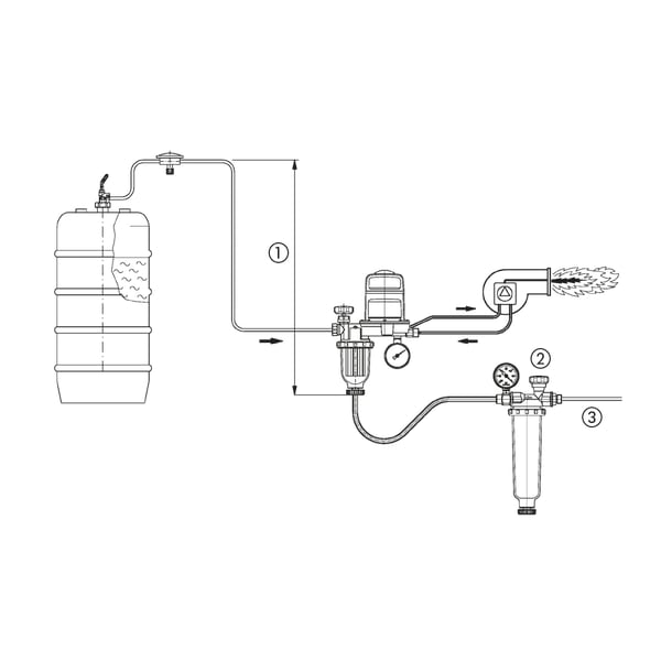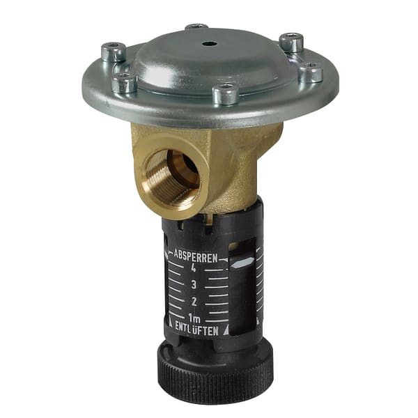 MAV is continuously adjustable to a safe height of 1–4 m for optimum adaptation to suit local conditions. The adjusted value corresponds to difference between the installation height and the lowest point of the oil line. MAV shuts off under spring pressure and opens under the vacuum caused by the pump. Watertight up to 10 m water column. If necessary, install a pressure compensation unit.