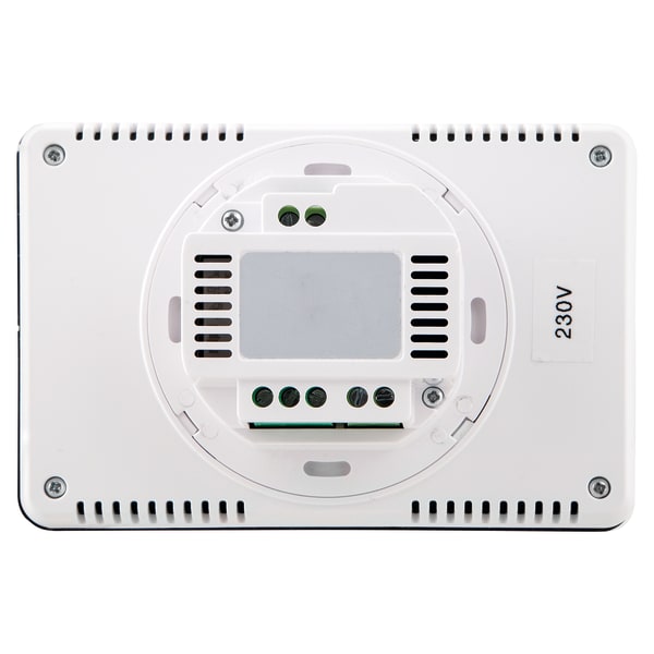 Images 4 Back Raumthermostat RT 05 | 86019 Raumthermostat für Regelklemmleiste WB 01/WB 10 D in-stock items Documents Benefits compact, modern designeasy mounting on standard in-wall switch boxeseither as 230 V or as battery versionlarge display with additional informationTimer programs can be storedsuitable for heating and cooling Application Determination of the actual ambient temperature and adjustment of the reference value for the room temperature. Can also be used for cooling (manual switching). Description The room thermostat RT 05 is a part of the complete system FloorControl for single-room temperature control. Each room thermostat measures the actual ambient temperature and switches the output to obtain the required reference temperature. The reference value for the room temperature is adjusted by means of the keys. The actual temperature in rooms with an underfloor heating system is compared to the reference temperature on an ongoing basis. In addition to the reference temperature, you can store timer programs (e.g. Day/Night). The display shows values such as temperature, time or battery status. Both versions are suitable for mounting to junction boxes or in-wall switch boxes.Versions:RT 05 D-BAT: Version with batteryRT 05 D-230: 230 V version Technical data Downloads Technical data ProgramsDay and night modeWochenprogramm: Gleiche Einstellung für alle TageDay program: Different setting for each dayOperating temperature rangeAmbient: 5/50 °CStorage: 5/50 °CTemperature adjustment range5/35 °CAccuracy: ± 0.5 KSupply voltageRT 05 D-230: AC 230 VRT 05 D-230: RT 05 D-230: 1.175 VAContact ratingNC: max. AC 250 V, 1 ANO: max. AC 250 V, 1 AHousingPlastic (PC)Colour: white (RAL 9003)Degree of protection: IP 20 (EN 60529)WeightRT 05 D-230: 189 g CompatibilityRT 05 D-230: WB 01 D-8-230 Downloads FloorControl Manuals PDF Download