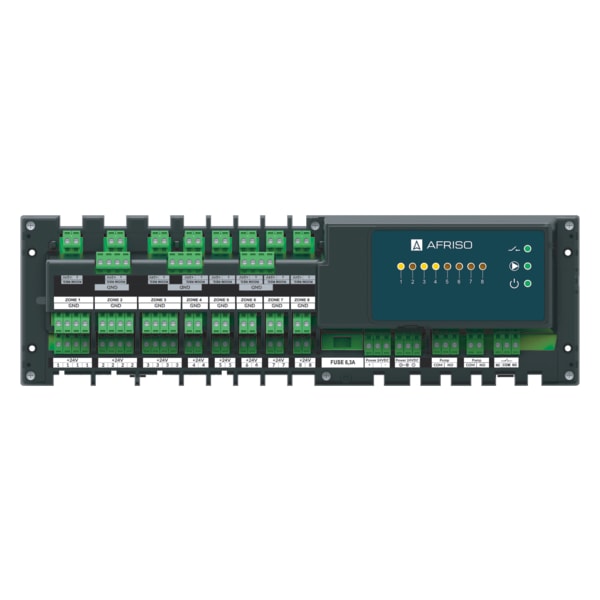 Products Our motto "Technology for Environmental Protection" has long been an inherent part of our product development philosophy and product range. We strive to improve the environment, to make processes which work with greater environmental compatibility and to avoid putting a strain on the environment. We offer you a multitude of innovative solutions, new products and smart concepts. More Informations Industries & Topics Industries & Topics Overview Fuel oil components Fuel oil components Overview Fast and clean oil filter change Avoiding fungal attacks in biofuel More performance with the sintered plastic sieve AFRISO Smart Home AFRISO Smart Home Overview Gateway HG 02 Products Products Overview AFRISOhome App Alexa Smart home applications Smart home applications Overview Leakage security Security Stand-alone applications Stand-alone applications Overview Getting started with AFRIShome Smart Home Craft 4.0 Craft 4.0 Overview OEM-Manifold systems Hydraulic Balancing Hydraulic Balancing Overview VarioQ Vario-DP Tank conversion Hygienic processes AFRISO Smart Home AFRISO Smart Home offers innovative solutions for intelligent home automation. With modern sensors and actuators, you can easily and conveniently control your home. More Informations Service-Center Service-Center Overview Service Contact persons Data exchange formats Catalogs Service-Center Flexible, cost-aware, on schedule, solution-oriented and fast – the AFRISO team always provides the decisive added value. More Informations Training & Events Training & Events Overview Exhibitions Exhibitions Overview SHK+E 2026, Essen IFH Intherm 2026, Nuremberg GET Nord 2026, Hamburg Schulungen & Trainings Schulungen & Trainings Overview Heizen mit flüssigen Brennstoffen Inhouse-Schulung - Heizen mit flüssigen Brennstoffen Inhouse-Schulung Heizölverbraucheranlagen Smart Home Experte Search ... Regelklemmleiste WB 01 86013 Regelklemmleiste WB 01 D-8-24 Images 4 Back Regelklemmleiste WB 01 | 86014 Einzelraum-Temperaturregelung FloorControl - Draht in-stock items Documents Benefits Controller terminal bar for connection of actuators and room thermostatsfor manifold systems for heating and coolingsuitable for room temperature sensors series RT – wired Application Controls the temperature of individual rooms in connection with manifold systems for heating (cooling function depends on room temperature sensor used). Description The single room temperature controller FloorControl is a complete system consisting of a terminal block with the corresponding number of room thermostats. The controller terminal bar has eight control circuits. One room thermostat is required per control circuit; it is wired to the controller terminal bar. Up to four thermostatic actuators can be connected to each of the control circuits 1 to 3; a maximum of two actuators can be connected to the thermostatic actuators 4 to 8. The room thermostat measures the actual temperature in the corresponding rooms. The reference temperature is adjusted by means of the keys of the room thermostat. The room thermostat then switches the thermostatic actuator via the controller terminal bar to control the heating circuit at the manifold.Versions:WB 01 D-8-24: Power supply for the thermostatic actuators (DC 24 V) and supply of the contacts of the room thermostat (battery operation only)WB 01 D-8-230: Power supply for the thermostatic actuators (AC 230 V) and supply of the contacts of the room thermostat (AC 230 V or battery operation only) Technical data Downloads Technical data Connectionsmax. 8 control circuits and 22 actuatorsmax. 1 Raumthermostat pro RegelkreisOperating temperature rangeAmbient: 5/50 °CStorage: 5/50 °CSupply voltageWB 01 D-8-24: DC 24 VNominal powerWB 01 D-8-24: plastic housing (ABS)Colour: white (RAL 9003)W x H x D: 335 x 106 x 72 mmDegree of protection: IP 20 (EN 60529)WeightWB 01 D-8-24: 751 g ( )CompatibilityWB 01 D-8-24: TA 03,RT 01 D-BAT,RT 05 D-BAT,Stellantriebe AC/DC 24 V Downloads Regelklemmleiste FloorControl WB 01 D-8-24 Manuals PDF Download Related products