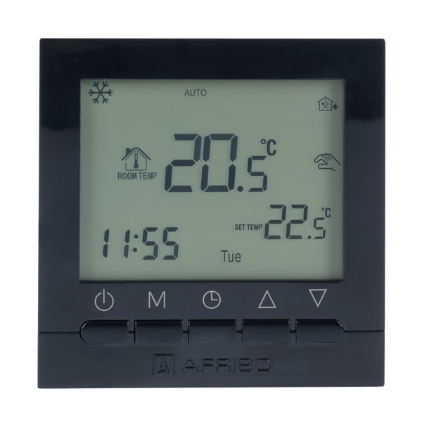 Products Our motto "Technology for Environmental Protection" has long been an inherent part of our product development philosophy and product range. We strive to improve the environment, to make processes which work with greater environmental compatibility and to avoid putting a strain on the environment. We offer you a multitude of innovative solutions, new products and smart concepts. More Informations Industries & Topics Industries & Topics Overview Fuel oil components Fuel oil components Overview Fast and clean oil filter change Avoiding fungal attacks in biofuel More performance with the sintered plastic sieve AFRISO Smart Home AFRISO Smart Home Overview Gateway HG 02 Products Products Overview AFRISOhome App Alexa Smart home applications Smart home applications Overview Leakage security Security Stand-alone applications Stand-alone applications Overview Getting started with AFRIShome Smart Home Craft 4.0 Craft 4.0 Overview OEM-Manifold systems Hydraulic Balancing Hydraulic Balancing Overview Vario-DP Tank conversion Hygienic processes AFRISO Smart Home AFRISO Smart Home offers innovative solutions for intelligent home automation. With modern sensors and actuators, you can easily and conveniently control your home. More Informations Service-Center Service-Center Overview Service Contact persons Catalogs Service-Center Flexible, cost-aware, on schedule, solution-oriented and fast – the AFRISO team always provides the decisive added value. More Informations Training & Events Training & Events Overview Exhibitions Exhibitions Overview SHK+E 2026, Essen IFH Intherm 2026, Nuremberg GET Nord 2026, Hamburg Search ... RT 10 D-230 C Raumthermostat RT10 D-230 C S Anschlussschema Images 5 Back Room thermostat RT 10 D-230 C S | 86064 Room thermostats RT 10 D-230 C in-stock items Benefits easy mounting on standard in-wall switch boxes230 V versionübersichtliches Display mit Heizen, Kühlen und AnforderungsanzeigeTimer programs can be storedsuitable for heating and cooling Technical data Accessories Technical data Programsjeweils für Heizen und KühlenAdjustable for 5 + 2 or 6 + 1 or 7 daysOperating temperature rangeAmbient: 5/60 °CStorage: 5/60 °CTemperature adjustment range5/35 °CAccuracy: ± 0.5 KSupply voltageAC 230 VContact ratingmax. AC 250 V, 3 AHousingPlastic (PC)Colour: schwarz (RAL 9004)W x H x D: 86 x 86 x 40 mmDegree of protection: IP 20 (EN 60529)Weight 165 g Scope of deliveryRaumthermostat RT 10 D-230 C S Accessories Accessories and spare parts for equipment for surface heating and cooling Abb. Bezeichnung NTC Fühler RT 10 D Cable length 3 m | 86069 Related products
