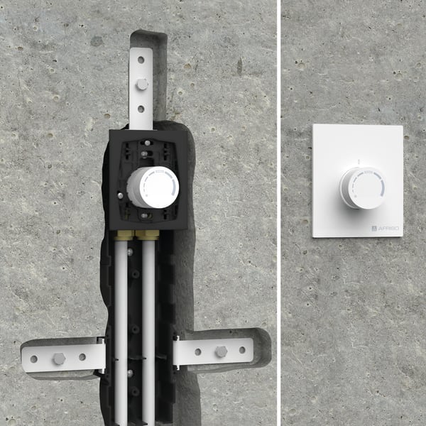 Products Our motto "Technology for Environmental Protection" has long been an inherent part of our product development philosophy and product range. We strive to improve the environment, to make processes which work with greater environmental compatibility and to avoid putting a strain on the environment. We offer you a multitude of innovative solutions, new products and smart concepts. More Informations Industries & Topics Industries & Topics Overview Fuel oil components Fuel oil components Overview Fast and clean oil filter change Avoiding fungal attacks in biofuel More performance with the sintered plastic sieve AFRISO Smart Home AFRISO Smart Home Overview Gateway HG 02 Products Products Overview AFRISOhome App Alexa Smart home applications Smart home applications Overview Leakage security Security Stand-alone applications Stand-alone applications Overview Getting started with AFRIShome Smart Home Craft 4.0 Craft 4.0 Overview OEM-Manifold systems Hydraulic Balancing Hydraulic Balancing Overview VarioQ Vario-DP Tank conversion Hygienic processes AFRISO Smart Home AFRISO Smart Home offers innovative solutions for intelligent home automation. With modern sensors and actuators, you can easily and conveniently control your home. More Informations Service-Center Service-Center Overview Service Contact persons Data exchange formats Catalogs Service-Center Flexible, cost-aware, on schedule, solution-oriented and fast – the AFRISO team always provides the decisive added value. More Informations Training & Events Training & Events Overview Exhibitions Exhibitions Overview SHK+E 2026, Essen IFH Intherm 2026, Nuremberg GET Nord 2026, Hamburg Schulungen & Trainings Schulungen & Trainings Overview Heizen mit flüssigen Brennstoffen Inhouse-Schulung - Heizen mit flüssigen Brennstoffen Inhouse-Schulung Heizölverbraucheranlagen Smart Home Experte Search Domestic technology Equipment for surface heating and cooling systems 78330 Einzelraumregelung RTL-Box 324 Vario Dimensions (in mm) Images 3 Back RTL-Box 324 Vario | 78330 Einzelraumregelung mit Rücklauftemperaturbegrenzung in-stock items Documents Benefits very compact visible plate (11.5 x 13.5 cm) made of high-gloss plasticselegant, compact control headexact alignment with mounting wall due to depth-adjustable mounting frameaesthetic design allows for user-friendly mounting at the level of the light switches Application For decentralised temperature control in individual rooms with underfloor heating systems or wall heating systems in combination with radiator installation. Ideal for scenarios without radiator installation and if no centralised distribution is desired. The RTL-Box 324 Vario combines heating circuit, room temperature sensor and control in a single unit. The purely mechanical function of the room controller requires no additional electrical power for actuators or similar equipment. Due to the compact dimensions and the aesthetic design, the RTL-Box fits perfectly at the level of light switch installations. This ensures optimum control characteristics and excellent user-friendliness. Description The single room controller RTL-Box 324 Vario consists of a high-grade, high-gloss cover plate made of sturdy plastic, an aesthetic thermostat control head and a mounting frame. The mounting frame adapts to the wall and levels a height of up to 25 mm. The optional extension kit extends the thermostat head by 20 mm if the maximum wall level height is exceeded. The wall installation box with shell protection comprises an adjustable valve assembly consisting of a control valve, a thermostat valve and a return temperature limiter for limiting the radiator return temperature to a temperature level suitable for the underfloor heating system. The valve opens when the values falls below the adjusted limit value. The pipes of the underfloor heating system are mounted in the wall installation box by means of standard compression fittings. Technical data Downloads Accessories Technical data Temperature adjustment rangereference (room temperature): 8/28 °Creturn temperature: 20/48 °COperating temperature rangeMedium: max. 90 °Csystem connectionsconnector with eurocone, can be fixed with spring clipsPipe connectionEurocone G¾Nominal pressuremax. 6 barInstallation depth63/88 mmHousingPlastic cover PC/ABS high-gloss whiteWandeinbaukasten aus Kunststoff PP schwarzWeight 1.25 kg Downloads Einzelraumregelung RTL-Box 324 Vario Manuals PDF Download Accessories Accessories and spare parts for equipment for surface heating and cooling Abb. Bezeichnung Verlängerungsset RTL-Box 324 Vario | 78331 Related products