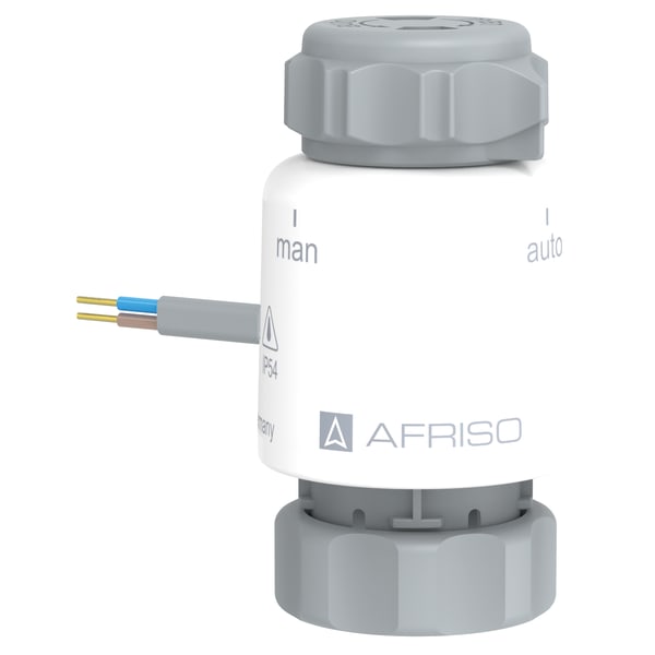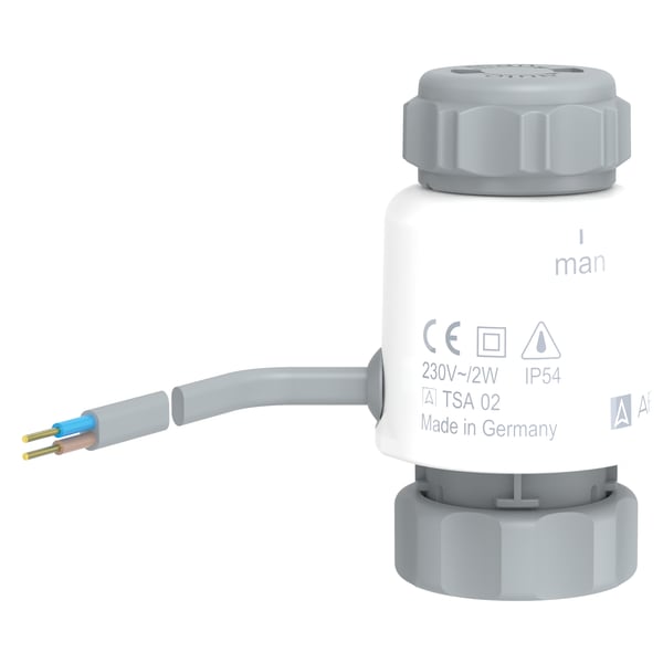 Products Our motto "Technology for Environmental Protection" has long been an inherent part of our product development philosophy and product range. We strive to improve the environment, to make processes which work with greater environmental compatibility and to avoid putting a strain on the environment. We offer you a multitude of innovative solutions, new products and smart concepts. More Informations Industries & Topics Industries & Topics Overview Fuel oil components Fuel oil components Overview Fast and clean oil filter change Avoiding fungal attacks in biofuel More performance with the sintered plastic sieve AFRISO Smart Home AFRISO Smart Home Overview Gateway HG 02 Products Products Overview AFRISOhome App Alexa Smart home applications Smart home applications Overview Leakage security Security Stand-alone applications Stand-alone applications Overview Getting started with AFRIShome Smart Home Craft 4.0 Craft 4.0 Overview OEM-Manifold systems Hydraulic Balancing Hydraulic Balancing Overview VarioQ Vario-DP Tank conversion Hygienic processes AFRISO Smart Home AFRISO Smart Home offers innovative solutions for intelligent home automation. With modern sensors and actuators, you can easily and conveniently control your home. More Informations Service-Center Service-Center Overview Service Contact persons Data exchange formats Catalogs Service-Center Flexible, cost-aware, on schedule, solution-oriented and fast – the AFRISO team always provides the decisive added value. More Informations Training & Events Training & Events Overview Exhibitions Exhibitions Overview SHK+E 2026, Essen IFH Intherm 2026, Nuremberg GET Nord 2026, Hamburg Search Domestic technology Equipment for surface heating and cooling systems TSA 02 FO thermal actuator TSA 02 FO 90N thermal actuator TSA 02 FO 90N Images 2 TSA 02 FO thermostatic actuator Variants Benefits First Open functionmanual Re-Open function without power appliedAuto Spin functionStroke indicatoreither as 24 V or as 230 V versionslim design (Ø 39 mm) Application For controlling the hot water valves in radiators or AFRISO distribution manifolds such as heating/cooling circuit manifolds ProCalida® MC, EF and VA or industrial manifolds IN. Actuators convert the electrical signal received from room or timer thermostats into a valve stroke to control the set temperature via the flow volume. The actuator is factory-opened (First Open function) so that the stroke vales at the heating circuit manifold remain open during initial commissioning. This facilitates mounting as well as filling and flushing of the system since, at this point in time, the control system is usually not yet operative. The First Open function (FO) is automatically disables (Auto Spin function) as soon as the actuator is electrically connected and fully closed. The FO function can also be disabled manually by turning the upper hand wheel to the left by 90° to set automatic mode at the actuator. For servicing, the factory setting "open" of the actuator can be restored manually via the hand wheel without power having to be applied (Re-Open function). The slim design (housing diameter 39 mm) allows for installation to manifolds with a heating circuit distance of 40 mm. Description Electro-thermostatic actuator with First Open and Re-Open functions, position indication, connection cable and union nut for direct connection to the valve or upper part of the valve. Closed when de-energised; available as 24 V or as 230 V version. Variants Technical data Variants Part no.thermostatic actuator TSA 02 FOAC 230 V, 90 N79014thermostatic actuator TSA 02 FOAC/DC 24 V, 90 N79015thermostatic actuator TSA 02 FOAC 230 V, 110 N79016thermostatic actuator TSA 02 FOAC/DC 24 V, 110 N79017 in-stock items manufactured goods Technical data functionsFirst Open and Re-Open functions (adjustable via hand wheel),Auto-Spin-FunktionOperating modeclosed when de-energised (NC)Auslieferungszustand: Werkseitig geöffnetStroke> 3.2 mmIndication via rodActuating force 90 NOpening time 5 − 6 minOperating temperature rangeAmbient: max. 60 °CSupply voltageAC 230 Vpower: 2 WConnectionunion nut M30 x 1.5 mmClosing dimension 10.8 mmCable length 1 mHousingPlasticH x ⌀: 72 x 39 mmDegree of protection: IP 54 (EN 60529) Related products