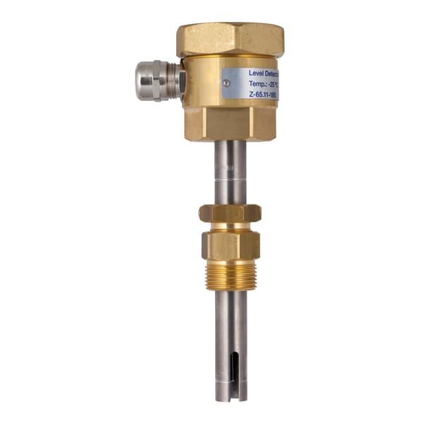 Images 3 76 A Standaufnehmer für Überfüllsicherung (WHG) Variants Documents Benefits type approved in conjunction with the transducers UFS 01, NB 220 H and NB 220 QS as part of an overfill prevention system Application Level probe for transducers as part of an overfill prevention system for stationary tanks and stationary-use tanks used to store water-polluting liquids with a flash point of > 55 ºC (see product description UFS 01 for list of substances). Description Approved as part of an overfill prevention system together with level transducers UFS 01 and NB 220 H. The level probe type 76 A consists of a probe tube with a stainless steel-encapsulated PTC thermistor sensor at the lower end, a junction box and a screw fitting. Tube length 100 to 3,000 mm in increments of 100 mm. Standard lengths up to 500 mm. The overfill prevention system must be set up in such a way that a sufficiently loud audible alarm is triggered when the maximum permissible level is reached. Variants Technical data Downloads Variants LengthLengthPart no.level probe 76 A100 mm53225level probe 76 A200 mm53217level probe 76 A300 mm53220level probe 76 A400 mm53207level probe 76 A500 mm53209 in-stock items manufactured goods Technical data Materialjunction box: BrassProbe tube: stainless steel 304 or 316 TiScrew fitting: BrassPTC thermistor: stainless steel-encapsulatedProcess connectionConnection thread G¾Operating temperature rangeMedium: -25/+50 °CDegree of protectionIP 54 (EN 60529)approvalDIBt: Z-65.11-185 Downloads WATCHDOG-LINE Warngeräte PDF English German Überfüllsicherung NB 220 / UFS Manuals Domestic Technology PDF Download Anlagendokumentation UFS Manuals PDF Download