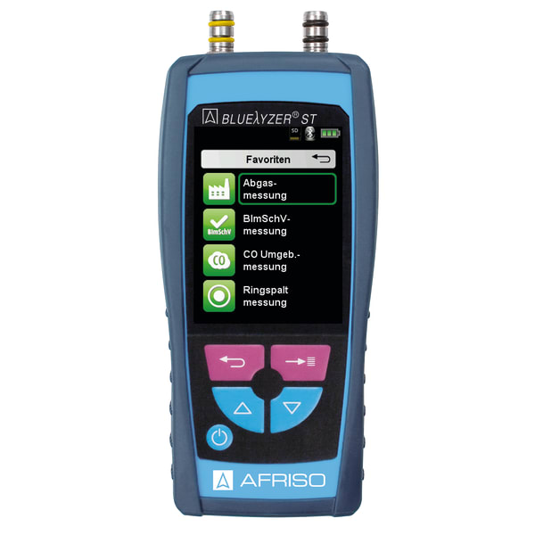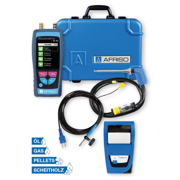 Products Our motto "Technology for Environmental Protection" has long been an inherent part of our product development philosophy and product range. We strive to improve the environment, to make processes which work with greater environmental compatibility and to avoid putting a strain on the environment. We offer you a multitude of innovative solutions, new products and smart concepts. More Informations Industries & Topics Industries & Topics Overview Fuel oil components Fuel oil components Overview Fast and clean oil filter change Avoiding fungal attacks in biofuel More performance with the sintered plastic sieve AFRISO Smart Home AFRISO Smart Home Overview Gateway HG 02 Products Products Overview AFRISOhome App Alexa Smart home applications Smart home applications Overview Leakage security Security Stand-alone applications Stand-alone applications Overview Getting started with AFRIShome Smart Home Craft 4.0 Craft 4.0 Overview OEM-Manifold systems Hydraulic Balancing Hydraulic Balancing Overview VarioQ Vario-DP Tank conversion Hygienic processes AFRISO Smart Home AFRISO Smart Home offers innovative solutions for intelligent home automation. With modern sensors and actuators, you can easily and conveniently control your home. More Informations Service-Center Service-Center Overview Service Contact persons Data exchange formats Catalogs Service-Center Flexible, cost-aware, on schedule, solution-oriented and fast – the AFRISO team always provides the decisive added value. More Informations Training & Events Training & Events Overview Exhibitions Exhibitions Overview SHK+E 2026, Essen IFH Intherm 2026, Nuremberg GET Nord 2026, Hamburg Search Domestic technology Portable measuring instruments for service and maintenance P00131 BLUELYZER ST Pro Set Images 5 Back BLUELYZER ST set Pro | P00131 Complete package flue gas analysis in-stock items Documents Benefits CO high device for measurements at all heat generators up to 20,000 ppm, including pellets boilerscomprehensive all-rounder set with IR printerCombustion air probe for measurements at room air-independent systemsrobust hard top casethe world's smallest, fully-featured HVAC all-rounder with TFT colour displayFlue gas analysis, pressure measurement (draft) and (differential) temperature measurement with a single instrumentCO ambient measurement with two freely adjustable alarm thresholdsfully-fledged temperature measurement program, differential temperatures (e.g. flow/return) can also be determinedHold function: Display shows the measured value for a given period of time while the measurement keeps running in the backgroundMeasurement programs and measured values can be freely editeddisplay reverse function: TFT display can be rotated by 180° for easy reading and excellent working conditions at the point of measurementzoom mode for entire display, "Single-value display"Memory function with up to 100 measurement logsCAPBs®-enabled Application Ideal for HVAC professionals for accurate adjustments or inspections, on par with official flue gas analysers. BLUELYZER ST is suitable for flue gas analysis, pressure measurement and (differential) temperature measurement. The HVAC all-rounder also provides exact calculation of the Eta value for all condensing heating systems with fuel-specific dew point calculation. Einsatzmedien Produkteigenschaften Schnittstellen Zulassungen Technical data Downloads Spare parts Technical data measuring ranges (measured values)Flue gas temperature/differential temperature0/1 150 °CAir temperature/combustion air temperature-20/+200 °CDraft-70/+70 hPaO2 measurement0/21 Vol.-%CO measurementnominal: 0/20 000 ppmadditional technical specificationsIndication (calculated values)CO2, COunverdünnt, Lambda, Taupunkt, Eta efficiency, Abgasverluste qA, CO mg/m3 (natural gas), CO mg/kWh (Heizöl)Operating temperature rangeAmbient: 0/40 °CStorage: -20/+50 °CDimensionsW x H x D: 66 x 143 x 37 mmDegree of protectionIP 42 (EN 60529)DisplayTFT colour display 2.8 "W x H: 45 x 60 mm240 x 320 pixelsConnectionsDraft/pressure: ∅ 7 mmGas: ∅ 8 mmtemperature: socket type KSupply voltagelithium-ion battery (3.6 V/1800 mAh)power supply unit (mini USB)Battery or mainsHours of operation (eco mode) 12 StundenData memorymicroSD card, max. 16 GBInterfacesInfrared,Bluetooth®,QR code generator,MicroSD-KartenslotApprovalsVDI 4206 (Blatt 1),DIN EN 50379-2 für O2/CO2, TA, TG, Druck,DIN EN 50379-3 for COScope of deliveryFlue gas analyser BLUELYZER STKalibrierprotokollprotective sleeve for device with magnetsNetzteil NTE 5 USB-ACharging cable USB-A - mini USBMicroSD-KarteCondensate filter cartridge KFP 2P5 x Partikelfilter5 x Teflon membraneAbgaskombisonde kompakt AKS-K 170 mmThermal printer EUROprinter IIVerbrennungsluftfühler TFB-VL 100 M mit MagnethalterHard top case Pro blue Downloads Abgasmessgerät BLUELYZER ST Manuals Domestic Technology PDF German German Spare parts Flue gas probe plug-in units Abb. Bezeichnung Annular gap probe | 500236 Annular gap probe | 570082 Thermal printer EUROprinter Abb. Bezeichnung thermal paper | 523374 thermal paper | 522666 EUROprinter II | 524340 EUROprinter II | 524346 Soot pumps RSP Abb. Bezeichnung Soot pump | 569581 Interfaces Abb. Bezeichnung Bluetooth interface | 500856 Temperature probes Abb. Bezeichnung Verbrennungsluftfühler mit Magnethalter | 500141 Verbrennungsluftfühler mit Magnethalter | 500141-1 Combustion air probe | 500147 Combustion air probe | 500147-2 Power supply units and charging cables Abb. Bezeichnung power supply unit | 523493 Ladekabel USB | 523506 Memory Abb. Bezeichnung SD memory card | 511035 Database memory | 511030 Flue gas probes Abb. Bezeichnung Flue gas combination probe, compact | 500268-5 Condensate filter cartridges KFP Abb. Bezeichnung Condensate filter cartridge KFP | 500192 Particle filter | 511009 Kondensatfilterpatrone KFP - Ersatzteilpakete | 500214 Filters Abb. Bezeichnung Teflon-Gewebemembrane | 511004 ISO calibration Abb. Bezeichnung ISO calibration | 