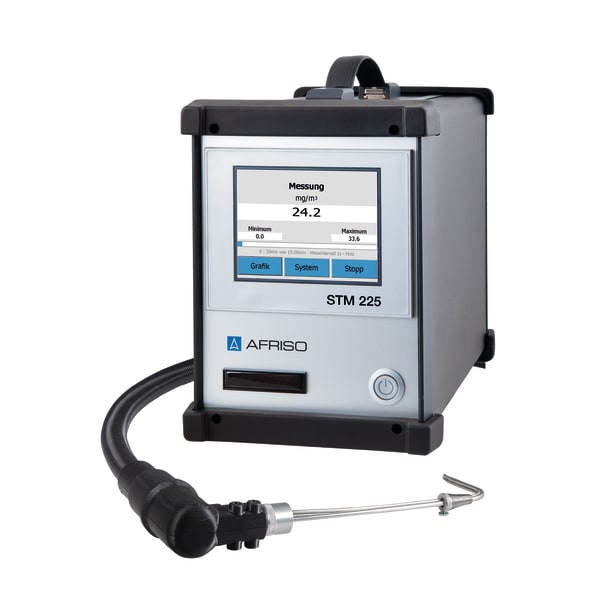 Products Our motto "Technology for Environmental Protection" has long been an inherent part of our product development philosophy and product range. We strive to improve the environment, to make processes which work with greater environmental compatibility and to avoid putting a strain on the environment. We offer you a multitude of innovative solutions, new products and smart concepts. More Informations Industries & Topics Industries & Topics Overview Fuel oil components Fuel oil components Overview Fast and clean oil filter change Avoiding fungal attacks in biofuel More performance with the sintered plastic sieve AFRISO Smart Home AFRISO Smart Home Overview Gateway HG 02 Products Products Overview AFRISOhome App Alexa Smart home applications Smart home applications Overview Leakage security Security Stand-alone applications Stand-alone applications Overview Getting started with AFRIShome Smart Home Craft 4.0 Craft 4.0 Overview OEM-Manifold systems Hydraulic Balancing Hydraulic Balancing Overview VarioQ Vario-DP Tank conversion Hygienic processes AFRISO Smart Home AFRISO Smart Home offers innovative solutions for intelligent home automation. With modern sensors and actuators, you can easily and conveniently control your home. More Informations Service-Center Service-Center Overview Service Contact persons Data exchange formats Catalogs Service-Center Flexible, cost-aware, on schedule, solution-oriented and fast – the AFRISO team always provides the decisive added value. More Informations Training & Events Training & Events Overview Exhibitions Exhibitions Overview SHK+E 2026, Essen IFH Intherm 2026, Nuremberg GET Nord 2026, Hamburg Search Domestic technology Portable measuring instruments for service and maintenance STM 225 BLACK EDITION rear view Images 2 STM 225 BLACK EDITION Dust measuring instrument Variants Documents Benefits optical measuring principle for fast, accurate measurement results and real time diagnosticsReliable measurement results, not influenced by interference (e.g. shocks)intuitive operation via menu-guided measuring sequencesoperation, flue gas analysis and data output via the optional flue gas analyser MULTILYZER STx as central controllerwithdrawal system with quick-action coupling lockvisualisation via 5.7" colour touch displaypermanent indication of the current measured valueoutput of the mass concentration of dust as a 15 minute mean valuequalification-tested also for 30-minutes mean value measurementshort setup time due to fast heat-up and zero point phaseeasy connection of flue gas analyser MULTILYZER STx via Bluetooth®compact, robust measuring system Application Dust measuring instrument specially designed for mobile use at solid-fuel systems such as pellets or wood fired systems for determining the mass concentration of particles/dust and for monitoring the limit values for particulate matter. Approved for stages 1 and 2, including limit value monitoring 150 mg/m3 for old systems as well as 30-minutes mean value measurement (single-stage measurement) of single room combustion systems. The sampling probe can also be used for tightness tests of the entire gas path. Ideal for chimney sweeps, heating system engineers and service technicians for performing required particulate matter measurements, e.g. as per 1st German Federal Immission Act. Variants Technical data Downloads Accessories Variants Part no.Dust measuring instrument STM 225 - BLACK EDITION Set 1570200Dust measuring instrument STM 225 - BLACK EDITION Set 2with MULTILYZER STx as central controller570228 in-stock items manufactured goods Technical data Measuring rangedust: 0/300 mg/m³Resolution0.1 mg/m³Operating temperature rangeAmbient: 5/40 °CStorage: -20/+50 °CHousingW x H x D: 205 x 275 x 350 mmDegree of protectionIP 40 (EN 60529)DisplayTFT colour touch display 5.7 "Supply voltageAC 230 V, 50 HzNominal powerwithout probe: 90 VAwith heated probe: 230 VAInterfacesBluetooth®,USB,RS 232ApprovalsZugelassen für die Brennstoffe 1-8 gemäß 1. BImSchV,Eignungszulassung für Stufe 1+2, inklusive 150 mg/m3, 30-Minuten-Mittelwertmessung Downloads Staubmessgerät STM 225 Set Manuals PDF Download Accessories Analysis lines Abb. Bezeichnung cleaning set | 570210 Related products