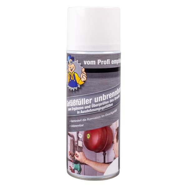 Images 1 Back Vessel filling liquid | 39633 manufactured goods Benefits helps to prevent corrosion in the expansion vesselaccessories / spare cylinder test and refill sets PNG Application Vessel filler for increasing the pressure cushion in expansion vessels. Description Cylinder for PNG-1, PNG-2 and PNG-3. With corrosion protection component, not flammable. Technical data Technical data connection thread7/16-28 UNEFTable of Contents400 ml