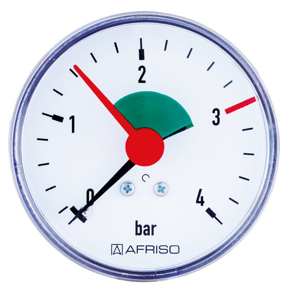 Products Our motto "Technology for Environmental Protection" has long been an inherent part of our product development philosophy and product range. We strive to improve the environment, to make processes which work with greater environmental compatibility and to avoid putting a strain on the environment. We offer you a multitude of innovative solutions, new products and smart concepts. More Informations Industries & Topics Industries & Topics Overview Fuel oil components Fuel oil components Overview Fast and clean oil filter change Avoiding fungal attacks in biofuel More performance with the sintered plastic sieve AFRISO Smart Home AFRISO Smart Home Overview Gateway HG 02 Products Products Overview AFRISOhome App Alexa Smart home applications Smart home applications Overview Leakage security Security Stand-alone applications Stand-alone applications Overview Getting started with AFRIShome Smart Home Craft 4.0 Craft 4.0 Overview OEM-Manifold systems Hydraulic Balancing Hydraulic Balancing Overview VarioQ Vario-DP Tank conversion Hygienic processes AFRISO Smart Home AFRISO Smart Home offers innovative solutions for intelligent home automation. With modern sensors and actuators, you can easily and conveniently control your home. More Informations Service-Center Service-Center Overview Service Contact persons Data exchange formats Catalogs Service-Center Flexible, cost-aware, on schedule, solution-oriented and fast – the AFRISO team always provides the decisive added value. More Informations Training & Events Training & Events Overview Exhibitions Exhibitions Overview SHK+E 2026, Essen IFH Intherm 2026, Nuremberg GET Nord 2026, Hamburg Search Domestic technology Pressure measuring instruments for domestic technology HZ 63 Images 2 HZ 63 Rohrfeder-Manometer für Heizung/Sanitär Variants Documents Benefits with self-sealing connection thread (NG 50 and 63) for fast mountingred maximum mark on dialadjustable red reference pointer and green operation segment on windowcorrosion-resistant housing Application For gaseous and liquid media which are not highly viscous, do not crystallise and do not attack copper alloys and EPDM.! For measuring gas or vapour, observe the table "Selection Criteria as per EN 837-2" (see appendix)! Variants Technical data Technical drawings Downloads Variants housing ⌀ConnectionConnectionThreadalignmentRangeTypePart no.HZ 6363 mmG⅜BSelf-sealing with PTFE sealing ringcentre back0/4 barHZ 63 ax63909HZ 6363 mmG⅜BSelf-sealing with PTFE sealing ringcentre back0/4 barHZ 63 ax63914 in-stock items manufactured goods Technical data Nominal size63 - 63accuracy class (EN 837-1/6)2,5ranges0/4 barapplication areastatic load: ¾ x full scale valuedynamic load: ⅔ x full scale valueshort-term: Full scale valueOperating temperature rangeMedium: max. 60 °CAmbient: -20/+60 °CTemperature performanceIndication error when the temperature of the measuring system deviates from the normal temperature of 20 °C:bei Temperaturzunahme ca. ± 0,4 %/10 K,falling temperature approx. ± 0.4 %/10 Kvom jeweiligen SkalenendwertDegree of protectionIP 32 (EN 60529) Standard design ConnectionBrass, centre backNG 63: G⅜B, Self-sealing with PTFE sealing ringMeasuring elementBourdon tube, "C" type tubeCopper alloymovementBrassDialKunststoff, weißWith red mark at 2.5 bar and green sector from 1.5 to 2.5 barScaling blackPointerKunststoff, schwarzHousingKunststoff (ABS), schwarz, highly impact-resistant and corrosion-resistantwindowKunststoff, eingeclipstwith adjustable red reference pointer and green flag Technical drawings Click the corresponding image for detail views, additional information and dimension tables. RF/HZ 63 – centre back connection Dimensions (mm) NG b c1 c2 g1 g2 G G1 s SW SW1 63 30,4 13 11,5 49,9 50,4 G¼B G⅜B 3,7 14 17 Downloads AFRISO_EU-KONFORMITAETSERKLAERUNG_DRUCKGERAETE_DE.PDF Industrial technology PDF Download Montage Manometer Manuals Industrial technology PDF Download Rohrfeder-, Kapselfeder-, Plattenfeder-, Membranfedermanometer für Differenzdruck Manuals Industrial technology PDF Ukrainian German German Related products