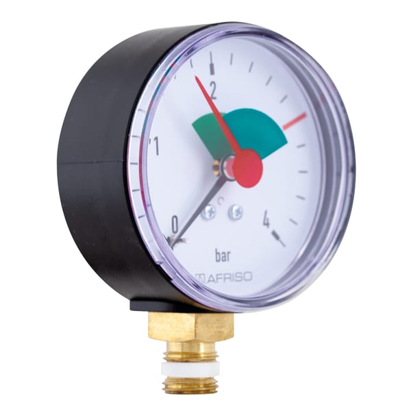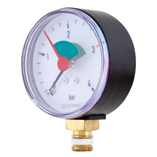 Products Our motto "Technology for Environmental Protection" has long been an inherent part of our product development philosophy and product range. We strive to improve the environment, to make processes which work with greater environmental compatibility and to avoid putting a strain on the environment. We offer you a multitude of innovative solutions, new products and smart concepts. More Informations Industries & Topics Industries & Topics Overview Fuel oil components Fuel oil components Overview Fast and clean oil filter change Avoiding fungal attacks in biofuel More performance with the sintered plastic sieve AFRISO Smart Home AFRISO Smart Home Overview Gateway HG 02 Products Products Overview AFRISOhome App Alexa Smart home applications Smart home applications Overview Leakage security Security Stand-alone applications Stand-alone applications Overview Getting started with AFRIShome Smart Home Craft 4.0 Craft 4.0 Overview OEM-Manifold systems Hydraulic Balancing Hydraulic Balancing Overview VarioQ Vario-DP Tank conversion Hygienic processes AFRISO Smart Home AFRISO Smart Home offers innovative solutions for intelligent home automation. With modern sensors and actuators, you can easily and conveniently control your home. More Informations Service-Center Service-Center Overview Service Contact persons Data exchange formats Catalogs Service-Center Flexible, cost-aware, on schedule, solution-oriented and fast – the AFRISO team always provides the decisive added value. More Informations Training & Events Training & Events Overview Exhibitions Exhibitions Overview SHK+E 2026, Essen IFH Intherm 2026, Nuremberg GET Nord 2026, Hamburg Schulungen & Trainings Schulungen & Trainings Overview Heizen mit flüssigen Brennstoffen Inhouse-Schulung - Heizen mit flüssigen Brennstoffen Inhouse-Schulung Heizölverbraucheranlagen Smart Home Experte Search Domestic technology Pressure measuring instruments for domestic technology 63911 HZ 63 0/4bar 1/4 m.PTFE rad Kl.2,5 Images 5 Back HZ 63 | 63911 Rohrfeder-Manometer für Heizung/Sanitär in-stock items Documents Benefits with self-sealing connection thread (NG 50 and 63) for fast mountingred maximum mark on dialadjustable red reference pointer and green operation segment on windowcorrosion-resistant housing Application For gaseous and liquid media which are not highly viscous, do not crystallise and do not attack copper alloys and EPDM.! For measuring gas or vapour, observe the table "Selection Criteria as per EN 837-2" (see appendix)! Technical data Technical drawings Downloads Technical data Nominal size63 - 63accuracy class (EN 837-1/6)2,5ranges0/4 barapplication areastatic load: ¾ x full scale valuedynamic load: ⅔ x full scale valueshort-term: Full scale valueOperating temperature rangeMedium: max. 60 °CAmbient: -20/+60 °CTemperature performanceIndication error when the temperature of the measuring system deviates from the normal temperature of 20 °C:bei Temperaturzunahme ca. ± 0,4 %/10 K,falling temperature approx. ± 0.4 %/10 Kvom jeweiligen SkalenendwertDegree of protectionIP 32 (EN 60529) Standard design ConnectionBrass, bottomNG 63: G¼B, Self-sealing with PTFE sealing ringMeasuring elementBourdon tube, "C" type tubeCopper alloymovementBrassDialKunststoff, weißWith red mark at 3 bar and green sector from 1.5 to 3 barScaling blackPointerKunststoff, schwarzHousingKunststoff (ABS), schwarz, highly impact-resistant and corrosion-resistantwindowKunststoff, eingeclipstwith adjustable red reference pointer and green flag Technical drawings Click the corresponding image for detail views, additional information and dimension tables. RF/HZ 63 – bottom connection Dimensions (mm) NG a b1 c c1 G G1 h h1 s SW SW1 63 9,8 29,7 11,2 13 G½B G⅜B 49,5 51,5 3,7 14 17 Downloads Montage Manometer Manuals Industrial technology PDF Download Rohrfeder-, Kapselfeder-, Plattenfeder-, Membranfedermanometer für Differenzdruck Manuals Industrial technology PDF Ukrainian German German AFRISO_EU-KONFORMITAETSERKLAERUNG_DRUCKGERAETE_DE.PDF Industrial technology PDF Download Related products