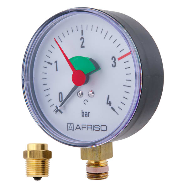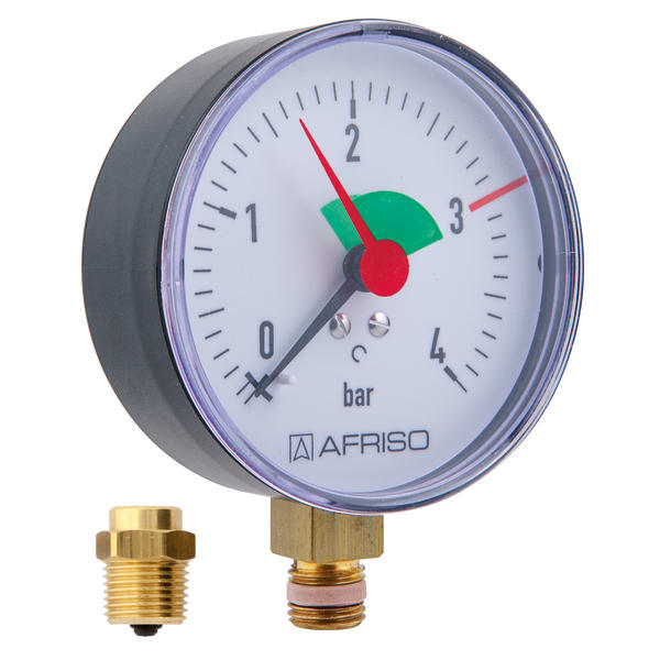 Products Our motto "Technology for Environmental Protection" has long been an inherent part of our product development philosophy and product range. We strive to improve the environment, to make processes which work with greater environmental compatibility and to avoid putting a strain on the environment. We offer you a multitude of innovative solutions, new products and smart concepts. More Informations Industries & Topics Industries & Topics Overview Fuel oil components Fuel oil components Overview Fast and clean oil filter change Avoiding fungal attacks in biofuel More performance with the sintered plastic sieve AFRISO Smart Home AFRISO Smart Home Overview Gateway HG 02 Products Products Overview AFRISOhome App Alexa Smart home applications Smart home applications Overview Leakage security Security Stand-alone applications Stand-alone applications Overview Getting started with AFRIShome Smart Home Craft 4.0 Craft 4.0 Overview OEM-Manifold systems Hydraulic Balancing Hydraulic Balancing Overview VarioQ Vario-DP Tank conversion Hygienic processes AFRISO Smart Home AFRISO Smart Home offers innovative solutions for intelligent home automation. With modern sensors and actuators, you can easily and conveniently control your home. More Informations Service-Center Service-Center Overview Service Contact persons Data exchange formats Catalogs Service-Center Flexible, cost-aware, on schedule, solution-oriented and fast – the AFRISO team always provides the decisive added value. More Informations Training & Events Training & Events Overview Exhibitions Exhibitions Overview SHK+E 2026, Essen IFH Intherm 2026, Nuremberg GET Nord 2026, Hamburg Schulungen & Trainings Schulungen & Trainings Overview Heizen mit flüssigen Brennstoffen Inhouse-Schulung - Heizen mit flüssigen Brennstoffen Inhouse-Schulung Heizölverbraucheranlagen Smart Home Experte Search Domestic technology Pressure measuring instruments for domestic technology 63913 HZ 80 0/4bar 1/4 m.PTFE rad Kl.2,5 mit Ventil, im Einzelkarton Images 4 Back HZ 80 | 63913 Rohrfeder-Manometer für Heizung/Sanitär in-stock items Documents Benefits with self-sealing connection thread (NG 50 and 63) for fast mountingred maximum mark on dialadjustable red reference pointer and green operation segment on windowcorrosion-resistant housing Application For gaseous and liquid media which are not highly viscous, do not crystallise and do not attack copper alloys and EPDM.! For measuring gas or vapour, observe the table "Selection Criteria as per EN 837-2" (see appendix)! Technical data Technical drawings Downloads Technical data Nominal size80 - 80accuracy class (EN 837-1/6)2,5ranges0/4 barapplication areastatic load: ¾ x full scale valuedynamic load: ⅔ x full scale valueshort-term: Full scale valueOperating temperature rangeMedium: max. 60 °CAmbient: -20/+60 °CTemperature performanceIndication error when the temperature of the measuring system deviates from the normal temperature of 20 °C:bei Temperaturzunahme ca. ± 0,4 %/10 K,falling temperature approx. ± 0.4 %/10 Kvom jeweiligen SkalenendwertDegree of protectionIP 32 (EN 60529) Standard design ConnectionBrass, bottomNG 80: G¼B, Self-sealing with PTFE sealing ringMeasuring elementBourdon tube, "C" type tubeCopper alloymovementBrassDialKunststoff, weißWith red mark at 3 bar and green sector from 1.5 to 3 barScaling blackPointerKunststoff, schwarzHousingKunststoff (ABS), schwarz, highly impact-resistant and corrosion-resistantwindowKunststoff, eingeclipstwith adjustable red reference pointer and green flag Technical drawings Click the corresponding image for detail views, additional information and dimension tables. RF 80/HY 80/HZ 80 – bottom connection Dimensions (mm) NG a b1 c G h s SW 80 12,8 32,8 17 G½B 64 2,8 14 Downloads Montage Manometer Manuals Industrial technology PDF Download Rohrfeder-, Kapselfeder-, Plattenfeder-, Membranfedermanometer für Differenzdruck Manuals Industrial technology PDF Ukrainian German German AFRISO_EU-KONFORMITAETSERKLAERUNG_DRUCKGERAETE_DE.PDF Industrial technology PDF Download Related products
