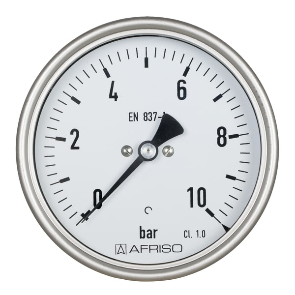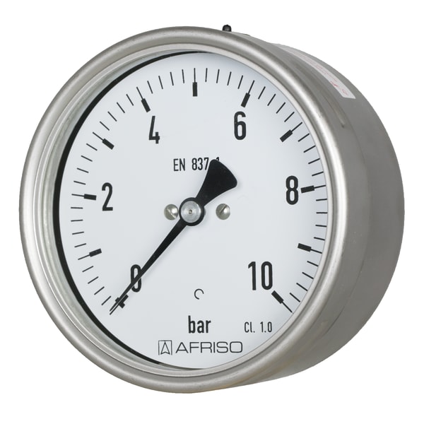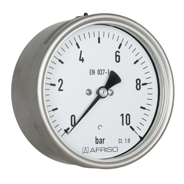 Products Our motto "Technology for Environmental Protection" has long been an inherent part of our product development philosophy and product range. We strive to improve the environment, to make processes which work with greater environmental compatibility and to avoid putting a strain on the environment. We offer you a multitude of innovative solutions, new products and smart concepts. More Informations Industries & Topics Industries & Topics Overview Fuel oil components Fuel oil components Overview Fast and clean oil filter change Avoiding fungal attacks in biofuel More performance with the sintered plastic sieve AFRISO Smart Home AFRISO Smart Home Overview Gateway HG 02 Products Products Overview AFRISOhome App Alexa Smart home applications Smart home applications Overview Leakage security Security Stand-alone applications Stand-alone applications Overview Getting started with AFRIShome Smart Home Craft 4.0 Craft 4.0 Overview OEM-Manifold systems Hydraulic Balancing Hydraulic Balancing Overview VarioQ Vario-DP Tank conversion Hygienic processes AFRISO Smart Home AFRISO Smart Home offers innovative solutions for intelligent home automation. With modern sensors and actuators, you can easily and conveniently control your home. More Informations Service-Center Service-Center Overview Service Contact persons Data exchange formats Catalogs Service-Center Flexible, cost-aware, on schedule, solution-oriented and fast – the AFRISO team always provides the decisive added value. More Informations Training & Events Training & Events Overview Exhibitions Exhibitions Overview SHK+E 2026, Essen IFH Intherm 2026, Nuremberg GET Nord 2026, Hamburg Search Domestic technology Pressure measuring instruments for domestic technology RF160I D411 Images 5 RF160I D411 Rohrfeder-Industriemanometer Typ D4 Variants Documents Info housing ⌀ (nominal size)160 mmConnectionG½Balignmentbottom backaccuracy class1,0standardEN 837-1 Benefits for machine and plant engineeringrobust, stainless steel housing with bayonet bezelcan be equipped with electrical contactDNV-GL- and GOSSTANDART-certified Application For gaseous and liquid media which are not highly viscous, do not crystallise and do not attack copper alloys. For high accuracy and rough application conditions.! For measuring gas or vapour, observe the table "Selection Criteria as per EN 837-2" (see appendix)! Variants Technical data Technical drawings Downloads Variants RangeMounting typeTypePart number-1/0 bardirectRF160I D41185351411-1/0.6 bardirectRF160I D41185352411-1/+1.5 bardirectRF160I D41185353411-1/+3 bardirectRF160I D41185354411-1/+5 bardirectRF160I D41185355411-1/+9 bardirectRF160I D41185356411-1/+15 bardirectRF160I D411853574110/0.6 bardirectRF160I D411853594110/1 bardirectRF160I D411853604110/1.6 bardirectRF160I D411853614110/2.5 bardirectRF160I D411853624110/4 bardirectRF160I D411853634110/6 bardirectRF160I D411853644110/10 bardirectRF160I D411853654110/16 bardirectRF160I D411853664110/25 bardirectRF160I D411853674110/40 bardirectRF160I D411853684110/60 bardirectRF160I D411853694110/100 bardirectRF160I D411853704110/160 bardirectRF160I D411853714110/250 bardirectRF160I D411853724110/400 bardirectRF160I D411853734110/600 bardirectRF160I D411853744110/1 000 bardirectRF160I D41185375411 in-stock items manufactured goods Technical data TypeD4Nominal size160 - 160accuracy class (EN 837-1/6)1,0ranges (EN 837-1/5)see ordering tableapplication areastatic load≤ 600 bar: Full scale value> 600 bar: ¾ x full scale valuedynamic load≤ 600 bar: 0.9 x full scale value> 600 bar: ⅔ x full scale valueshort-term≤ 600 bar: 1.3 x full scale value> 600 bar: Full scale valueOperating temperature rangeMedium: max. 60 °CAmbient: -20/+60 °CTemperature performanceIndication error when the temperature of the measuring system deviates from the normal temperature of 20 °C:bei Temperaturzunahme ca. ± 0,4 %/10 K,falling temperature approx. ± 0.4 %/10 Kvom jeweiligen SkalenendwertDegree of protectionIP 54 (EN 60529) Standard design ConnectionBrass, bottom backMeasuring elementBourdon tube≤ 60 bar: "C" type tube, Copper alloy> 60 bar: helical tube, stainless steel 316 Ti/316 LmovementBrassDialAluminium, weißScaling blackPointerAluminium, schwarzHousingEdelstahl 304, with blow-outbayonet bezelEdelstahl 304windowInstrumentenglas Technical drawings Click the corresponding image for detail views, additional information and dimension tables. bottom back connection Dimensions (mm) NG b2∅c c1 c2 e G g SW 100 49 6 3 20 26,5 G½B 81 22 160 50 6 3 20 26,5 G½B 82 22 250 - 6 3 20 - G½B - 22 Downloads Rohrfeder-Manometer Domestic Technology PDF English German AFRISO_EU-KONFORMITAETSERKLAERUNG_DRUCKGERAETE_DE.PDF Industrial technology PDF Download Montage Manometer Manuals Industrial technology PDF Download Rohrfeder-, Kapselfeder-, Plattenfeder-, Membranfedermanometer für Differenzdruck Manuals Industrial technology PDF Ukrainian German German RF160I_D411_853XX411.STP STEP 3D Modell Domestic Technology STP Download Related products