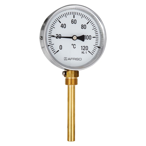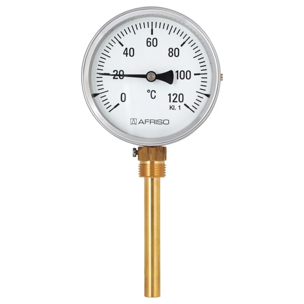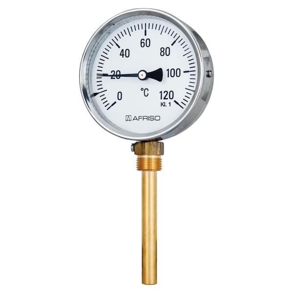 Products Our motto "Technology for Environmental Protection" has long been an inherent part of our product development philosophy and product range. We strive to improve the environment, to make processes which work with greater environmental compatibility and to avoid putting a strain on the environment. We offer you a multitude of innovative solutions, new products and smart concepts. More Informations Industries & Topics Industries & Topics Overview Fuel oil components Fuel oil components Overview Fast and clean oil filter change Avoiding fungal attacks in biofuel More performance with the sintered plastic sieve AFRISO Smart Home AFRISO Smart Home Overview Gateway HG 02 Products Products Overview AFRISOhome App Alexa Smart home applications Smart home applications Overview Leakage security Security Stand-alone applications Stand-alone applications Overview Getting started with AFRIShome Smart Home Craft 4.0 Craft 4.0 Overview OEM-Manifold systems Hydraulic Balancing Hydraulic Balancing Overview VarioQ Vario-DP Tank conversion Hygienic processes AFRISO Smart Home AFRISO Smart Home offers innovative solutions for intelligent home automation. With modern sensors and actuators, you can easily and conveniently control your home. More Informations Service-Center Service-Center Overview Service Contact persons Data exchange formats Catalogs Service-Center Flexible, cost-aware, on schedule, solution-oriented and fast – the AFRISO team always provides the decisive added value. More Informations Training & Events Training & Events Overview Exhibitions Exhibitions Overview SHK+E 2026, Essen IFH Intherm 2026, Nuremberg GET Nord 2026, Hamburg Schulungen & Trainings Schulungen & Trainings Overview Heizen mit flüssigen Brennstoffen Inhouse-Schulung - Heizen mit flüssigen Brennstoffen Inhouse-Schulung Heizölverbraucheranlagen Smart Home Experte Search Domestic technology Temperature measuring instruments for domestic technology BiTh 160 I D201 Images 5 BiTh 160 I D201 Bimetall-Industriethermometer Variants Benefits ranges: -20/+60, 0/60, 0/120, 0/160 °Cbrass thermowellbrass stem Application Mechanical engineering, plant engineering, pipelines, boilers, heating technology Variants Technical data Technical drawings Variants Typehousing ⌀mounting positionRangeStem lengthTypeTypePart no.BiTh 160 I160 mmbottom0/160 °C45 mmBiTh 160 ID20165451201BiTh 160 I160 mmbottom0/160 °C63 mmBiTh 160 ID20165452201BiTh 160 I160 mmbottom0/160 °C100 mmBiTh 160 ID20165453201BiTh 160 I160 mmbottom0/160 °C150 mmBiTh 160 ID20165454201 in-stock items manufactured goods Technical data TypeD2Nominal size160 - 160measuring elementBimetal helixaccuracy class1 (EN 13190)ranges °C0/160 °CApplication area (EN 13190)continuous load: Measuring rangeshort-term: RangeOperating pressure at thermowellmax. 10 bar (max. static)Degree of protectionIP 41 (EN 60529) Standard design ConnectionStem: Brass, ∅ 9 mmThermowell: G½B, Brass, ∅ 12 mm, removablemounting positionbottomDialAluminium, weißScaling blackPointerAluminium, schwarzHousingStahlblech, verzinktpush on bezelStahlblech, vernickeltwindowInstrumentenglas Technical drawings Click the corresponding image for detail views, additional information and dimension tables. Bottom connection Dimensions (mm)NGab1Dd2FGlSW631034631243,5G½B40221034631243,5G½B63221034631243,5G½B100221034631243,5G½B15022801036801252G½B40221036801252G½B63221036801252G½B100221036801252G½B1502210010361001262G½B402210361001262G½B632210361001262G½B1002210361001262G½B15022160371601292G½B4022371601292G½B6322371601292G½B10022371601292G½B15022 Related products