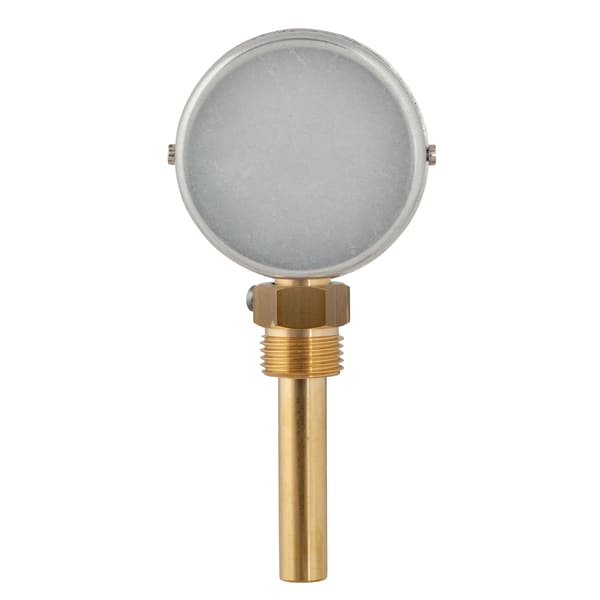 Images 5 BiTh 63 I D201 Bimetall-Industriethermometer Variants Benefits ranges: -20/+60, 0/60, 0/120, 0/160 °Cbrass thermowellbrass stem Application Mechanical engineering, plant engineering, pipelines, boilers, heating technology Variants Technical data Technical drawings Variants Typehousing ⌀mounting positionRangeStem lengthTypeTypePart no.BiTh 63 I63 mmbottom0/60 °C45 mmBiTh 63 ID20165131201BiTh 63 I63 mmbottom0/60 °C63 mmBiTh 63 ID20165132201BiTh 63 I63 mmbottom0/60 °C100 mmBiTh 63 ID20165133201BiTh 63 I63 mmbottom0/60 °C150 mmBiTh 63 ID20165134201 in-stock items manufactured goods Technical data TypeD2Nominal size63 - 63measuring elementBimetal helixaccuracy class1 (EN 13190)ranges °C0/60 °CApplication area (EN 13190)continuous load: Measuring rangeshort-term: RangeOperating pressure at thermowellmax. 10 bar (max. static)Degree of protectionIP 41 (EN 60529) Standard design ConnectionStem: Brass, ∅ 9 mmThermowell: G½B, Brass, ∅ 12 mm, removablemounting positionbottomDialAluminium, weißScaling blackPointerAluminium, schwarzHousingStahlblech, verzinktpush on bezelStahlblech, vernickeltwindowInstrumentenglas Technical drawings Click the corresponding image for detail views, additional information and dimension tables. Bottom connection Dimensions (mm)NGab1Dd2FGlSW631034631243,5G½B40221034631243,5G½B63221034631243,5G½B100221034631243,5G½B15022801036801252G½B40221036801252G½B63221036801252G½B100221036801252G½B1502210010361001262G½B402210361001262G½B632210361001262G½B1002210361001262G½B15022160371601292G½B4022371601292G½B6322371601292G½B10022371601292G½B15022