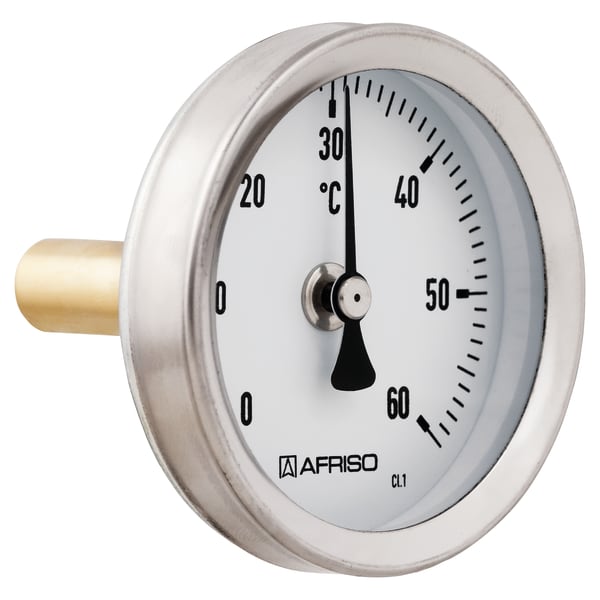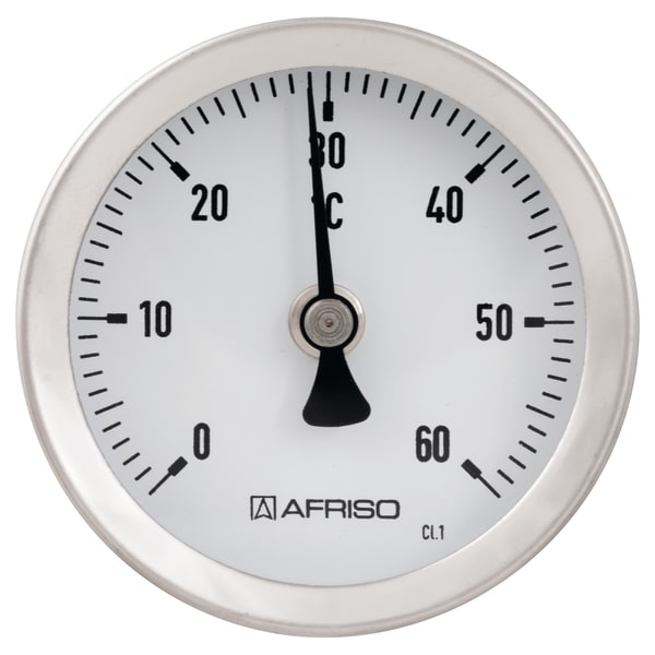 Products Our motto "Technology for Environmental Protection" has long been an inherent part of our product development philosophy and product range. We strive to improve the environment, to make processes which work with greater environmental compatibility and to avoid putting a strain on the environment. We offer you a multitude of innovative solutions, new products and smart concepts. More Informations Industries & Topics Industries & Topics Overview Fuel oil components Fuel oil components Overview Fast and clean oil filter change Avoiding fungal attacks in biofuel More performance with the sintered plastic sieve AFRISO Smart Home AFRISO Smart Home Overview Gateway HG 02 Products Products Overview AFRISOhome App Alexa Smart home applications Smart home applications Overview Leakage security Security Stand-alone applications Stand-alone applications Overview Getting started with AFRIShome Smart Home Craft 4.0 Craft 4.0 Overview OEM-Manifold systems Hydraulic Balancing Hydraulic Balancing Overview VarioQ Vario-DP Tank conversion Hygienic processes AFRISO Smart Home AFRISO Smart Home offers innovative solutions for intelligent home automation. With modern sensors and actuators, you can easily and conveniently control your home. More Informations Service-Center Service-Center Overview Service Contact persons Data exchange formats Catalogs Service-Center Flexible, cost-aware, on schedule, solution-oriented and fast – the AFRISO team always provides the decisive added value. More Informations Training & Events Training & Events Overview Exhibitions Exhibitions Overview SHK+E 2026, Essen IFH Intherm 2026, Nuremberg GET Nord 2026, Hamburg Schulungen & Trainings Schulungen & Trainings Overview Heizen mit flüssigen Brennstoffen Inhouse-Schulung - Heizen mit flüssigen Brennstoffen Inhouse-Schulung Heizölverbraucheranlagen Smart Home Experte Search Domestic technology Temperature measuring instruments for domestic technology BiTh 63 I D211 Images 5 BiTh 63 I D211 Bimetall-Industriethermometer Variants Benefits ranges: -20/+60, 0/60, 0/120, 0/160 °Cbrass thermowellbrass stem Application Mechanical engineering, plant engineering, pipelines, boilers, heating technology Variants Technical data Technical drawings Variants Typehousing ⌀mounting positionRangeStem lengthTypeTypePart no.BiTh 63 I63 mmcentre back0/60 °C45 mmBiTh 63 ID21165131211BiTh 63 I63 mmcentre back0/60 °C63 mmBiTh 63 ID21165132211BiTh 63 I63 mmcentre back0/60 °C100 mmBiTh 63 ID21165133211BiTh 63 I63 mmcentre back0/60 °C150 mmBiTh 63 ID21165134211 in-stock items manufactured goods Technical data TypeD2Nominal size63 - 63measuring elementBimetal helixaccuracy class1 (EN 13190)ranges °C0/60 °CApplication area (EN 13190)continuous load: Measuring rangeshort-term: RangeOperating pressure at thermowellmax. 10 bar (max. static)Degree of protectionIP 41 (EN 60529) Standard design ConnectionStem: Brass, ∅ 9 mmThermowell: G½B, Brass, ∅ 12 mm, removablemounting positioncentre backDialAluminium, weißScaling blackPointerAluminium, schwarzHousingStahlblech, verzinktpush on bezelStahlblech, vernickeltwindowInstrumentenglas Technical drawings Click the corresponding image for detail views, additional information and dimension tables. Centre back connection Dimensions (mm)NGbDd2GlSW63246312G½B402263246312G½B632263246312G½B1002263246312G½B1502280248012G½B402280248012G½B632280248012G½B1002280248012G½B150221002610012G½B40221002610012G½B63221002610012G½B100221002610012G½B150221603216012G½B40221603216012G½B63221603216012G½B100221603216012G½B15022 Related products