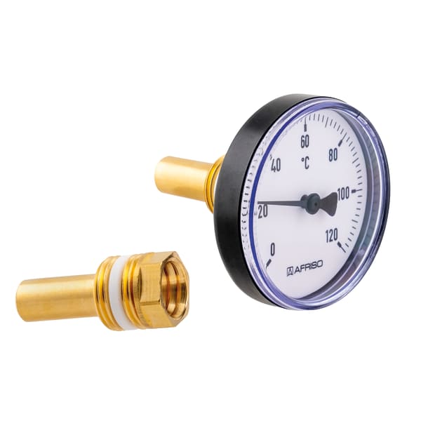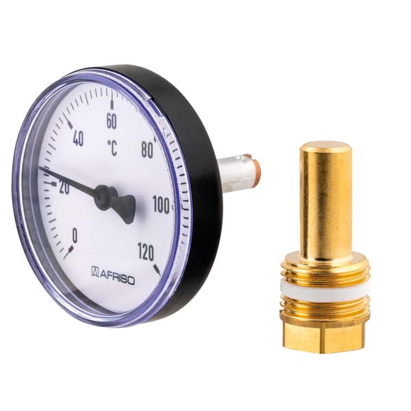 Products Our motto "Technology for Environmental Protection" has long been an inherent part of our product development philosophy and product range. We strive to improve the environment, to make processes which work with greater environmental compatibility and to avoid putting a strain on the environment. We offer you a multitude of innovative solutions, new products and smart concepts. More Informations Industries & Topics Industries & Topics Overview Fuel oil components Fuel oil components Overview Fast and clean oil filter change Avoiding fungal attacks in biofuel More performance with the sintered plastic sieve AFRISO Smart Home AFRISO Smart Home Overview Gateway HG 02 Products Products Overview AFRISOhome App Alexa Smart home applications Smart home applications Overview Leakage security Security Stand-alone applications Stand-alone applications Overview Getting started with AFRIShome Smart Home Craft 4.0 Craft 4.0 Overview OEM-Manifold systems Hydraulic Balancing Hydraulic Balancing Overview VarioQ Vario-DP Tank conversion Hygienic processes AFRISO Smart Home AFRISO Smart Home offers innovative solutions for intelligent home automation. With modern sensors and actuators, you can easily and conveniently control your home. More Informations Service-Center Service-Center Overview Service Contact persons Data exchange formats Catalogs Service-Center Flexible, cost-aware, on schedule, solution-oriented and fast – the AFRISO team always provides the decisive added value. More Informations Training & Events Training & Events Overview Exhibitions Exhibitions Overview SHK+E 2026, Essen IFH Intherm 2026, Nuremberg GET Nord 2026, Hamburg Schulungen & Trainings Schulungen & Trainings Overview Heizen mit flüssigen Brennstoffen Inhouse-Schulung - Heizen mit flüssigen Brennstoffen Inhouse-Schulung Heizölverbraucheranlagen Smart Home Experte Search Domestic technology Temperature measuring instruments for domestic technology BiTh 63 K Images 3 BiTh 63 K Bimetall-Thermometer mit Messing-Schutzrohr Variants Documents Benefits ranges:-20/+60, 0/60, 0/120, 0/160 °Cthermowell brass with optional self-sealing thread with PTFE sealing ringstem brass or aluminium Application Heating, plumbing Variants Technical data Technical drawings Downloads Variants Typehousing ⌀Connectionmounting positionRangeStem lengthStem lengthTypePart no.BiTh 63 K63 mmThermowellcentre back-20/+60 °C40 mmBiTh 63 K63763BiTh 63 K63 mmThermowellcentre back-20/+60 °C63 mmBiTh 63 K63769BiTh 63 K63 mmThermowellcentre back-20/+60 °C100 mmBiTh 63 K63770BiTh 63 K63 mmThermowellcentre back-20/+60 °C150 mmBiTh 63 K63771 in-stock items manufactured goods Technical data Nominal size63 - 63measuring elementBimetal helixaccuracy class2 (EN 13190)ranges °C-20/+60 °Capplication areaFull scale valueOperating pressure at thermowellmax. 6 bar Standard design ConnectionStem: brass or aluminium, ∅ 9 mmThermowell: G½B, Brass, ∅ 12 mm, removableThermowell: stem length 40 mm with optional self-sealing thread with PTFE sealing ringmounting positioncentre backDialKunststoff, weißScaling blackPointerKunststoff, schwarzHousingABS, schwarzwindowKunststoff, eingeclipst Technical drawings Click the corresponding image for detail views, additional information and dimension tables. Centre back connection, NG 63 – 80 – 100 Dimensions (mm) NG B D d1 G L1 L2 SW 63 14,7 62 12 G½B 40 61 19 63 14,7 62 12 G½B 63 85 19 63 14,7 62 12 G½B 100 122 19 63 14,7 62 12 G½B 150 172 19 80 14,8 79 12 G½B 40 61 19 80 14,8 79 12 G½B 63 85 19 80 14,8 79 12 G½B 100 122 19 80 14,8 79 12 G½B 150 172 19 100 15 100 12 G½B 40 61 19 100 15 100 12 G½B 63 85 19 100 15 100 12 G½B 100 122 19 100 15 100 12 G½B 150 172 19 100 15 100 12 G½B 200 222 19 Downloads Thermometer mit Easy-Fix-System Manuals PDF Download Related products