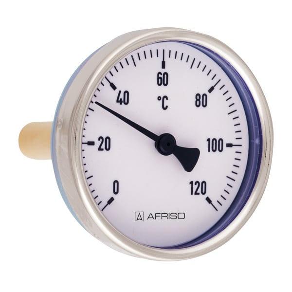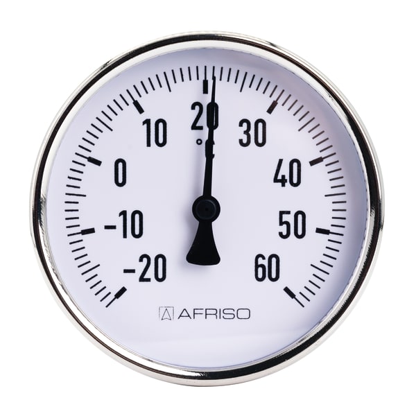 Products Our motto "Technology for Environmental Protection" has long been an inherent part of our product development philosophy and product range. We strive to improve the environment, to make processes which work with greater environmental compatibility and to avoid putting a strain on the environment. We offer you a multitude of innovative solutions, new products and smart concepts. More Informations Industries & Topics Industries & Topics Overview Fuel oil components Fuel oil components Overview Fast and clean oil filter change Avoiding fungal attacks in biofuel More performance with the sintered plastic sieve AFRISO Smart Home AFRISO Smart Home Overview Gateway HG 02 Products Products Overview AFRISOhome App Alexa Smart home applications Smart home applications Overview Leakage security Security Stand-alone applications Stand-alone applications Overview Getting started with AFRIShome Smart Home Craft 4.0 Craft 4.0 Overview OEM-Manifold systems Hydraulic Balancing Hydraulic Balancing Overview VarioQ Vario-DP Tank conversion Hygienic processes AFRISO Smart Home AFRISO Smart Home offers innovative solutions for intelligent home automation. With modern sensors and actuators, you can easily and conveniently control your home. More Informations Service-Center Service-Center Overview Service Contact persons Data exchange formats Catalogs Service-Center Flexible, cost-aware, on schedule, solution-oriented and fast – the AFRISO team always provides the decisive added value. More Informations Training & Events Training & Events Overview Exhibitions Exhibitions Overview SHK+E 2026, Essen IFH Intherm 2026, Nuremberg GET Nord 2026, Hamburg Schulungen & Trainings Schulungen & Trainings Overview Heizen mit flüssigen Brennstoffen Inhouse-Schulung - Heizen mit flüssigen Brennstoffen Inhouse-Schulung Heizölverbraucheranlagen Smart Home Experte Search Domestic technology Temperature measuring instruments for domestic technology BiTh 80 ST Images 4 BiTh 80 ST bimetal standard thermometer Variants Benefits ranges:-20/+60, 0/60, 0/120, 0/160 °Cbrass thermowellstem brass or aluminium Application Heating, plumbing Variants Technical data Technical drawings Variants Typehousing ⌀mounting positionRangeStem lengthTypeTypePart no.BiTh 80 ST80 mmcentre back-20/+60 °C40 mmBiTh 80 ST63955BiTh 80 ST80 mmcentre back-20/+60 °C63 mmBiTh 80 ST63956BiTh 80 ST80 mmcentre back-20/+60 °C100 mmBiTh 80 ST63957BiTh 80 ST80 mmcentre back-20/+60 °C150 mmBiTh 80 ST63958 in-stock items manufactured goods Technical data Nominal size80 - 80measuring elementBimetal helixaccuracy class2 (EN 13190)ranges °C-20/+60 °Capplication areaFull scale valueOperating pressure at thermowellmax. 6 bar Standard design ConnectionStem: brass or aluminium, ∅ 9 mmThermowell: G½B, brass or aluminium, ∅ 9 mmThermowell: (removable (with locking screw for 160 °C and higher))mounting positioncentre backDialUp to 120 °C: Plastic, white≥ 160 °C: Aluminium, whiteScaling blackPointerKunststoff, schwarzHousingStahlblech, verzinktpush on bezelStahlblech, vernickeltwindowKunststoff Technical drawings Click the corresponding image for detail views, additional information and dimension tables. Centre back connection Dimensions (mm) NG b1 D d1 G L1 SW 50 1850 12 G½B40 19/22 50 18 50 12 G½B 63 19/22 50 18 50 12 G½B 100 19/22 50 18 50 12 G½B 150 19/22 63 20 63 12 G½B 40 19/22 63 20 63 12 G½B 63 19/22 63 20 63 12 G½B 100 19/22 63 20 63 12 G½B 150 19/22 80 21 80 12 G½B 40 19/22 80 21 80 12 G½B 63 19/22 80 21 80 12 G½B 100 19/22 80 21 80 12 G½B 150 19/22 80 21 80 12 G½B 200 19/22 100 23,7 100 12 G½B 40 19/22 100 23,7 100 12 G½B 63 19/22 100 23,7 100 12 G½B 100 19/22 100 23,7 100 12 G½B 150 19/22 100 23,7 100 12 G½B 200 19/22 160 22 160 12 G½B 40 19/22 160 22 160 12 G½B 63 19/22 160 22 160 12 G½B 100 19/22 160 22 160 12 G½B 150 19/22 Related products