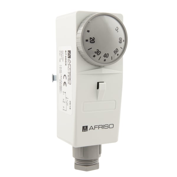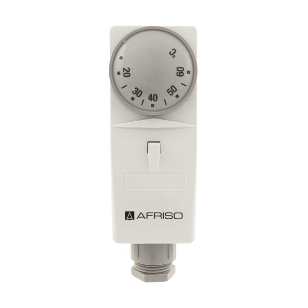 Products Our motto "Technology for Environmental Protection" has long been an inherent part of our product development philosophy and product range. We strive to improve the environment, to make processes which work with greater environmental compatibility and to avoid putting a strain on the environment. We offer you a multitude of innovative solutions, new products and smart concepts. More Informations Industries & Topics Industries & Topics Overview Fuel oil components Fuel oil components Overview Fast and clean oil filter change Avoiding fungal attacks in biofuel More performance with the sintered plastic sieve AFRISO Smart Home AFRISO Smart Home Overview Gateway HG 02 Products Products Overview AFRISOhome App Alexa Smart home applications Smart home applications Overview Leakage security Security Stand-alone applications Stand-alone applications Overview Getting started with AFRIShome Smart Home Craft 4.0 Craft 4.0 Overview OEM-Manifold systems Hydraulic Balancing Hydraulic Balancing Overview VarioQ Vario-DP Tank conversion Hygienic processes AFRISO Smart Home AFRISO Smart Home offers innovative solutions for intelligent home automation. With modern sensors and actuators, you can easily and conveniently control your home. More Informations Service-Center Service-Center Overview Service Contact persons Data exchange formats Catalogs Service-Center Flexible, cost-aware, on schedule, solution-oriented and fast – the AFRISO team always provides the decisive added value. More Informations Training & Events Training & Events Overview Exhibitions Exhibitions Overview SHK+E 2026, Essen IFH Intherm 2026, Nuremberg GET Nord 2026, Hamburg Schulungen & Trainings Schulungen & Trainings Overview Heizen mit flüssigen Brennstoffen Inhouse-Schulung - Heizen mit flüssigen Brennstoffen Inhouse-Schulung Heizölverbraucheranlagen Smart Home Experte Search Domestic technology Temperature measuring instruments for domestic technology GAT/7RC Images 3 GAT/7RC surface mounting thermostat with housing Variants Documents Benefits mechanical temperature controllerideal for underfloor heating systemsTemperature limitation at pipeseasy installation with strap Application Surface mounting thermostat for strap mounting at pipes from 16 to 100 mm diameter. The version with internal adjustment and temperature control range up to 60 °C is specially suited for underfloor heating systems. Description The surface mounting thermostat us a bimetal strip (element consisting of two metal strips with different heat expansion coefficients). When the temperature changes, the bimetal strip bends which triggers electrical switching. Variants Technical data Downloads Variants adjustmentOperating rangeSwitching pointSwitching pointcapillary lengthStem lengthPart no.surface mounting thermostat with housing GAT/7RCExternal20/60 °C67400Xsurface mounting thermostat with housing GAT/7RCExternal20/90 °C67401X in-stock items manufactured goods Technical data TypeGATOperating rangesee ordering tableTolerance+2 K/-8 KSwitching differential∆T 8 ± 3 KSettingGAT/7RC: ExternalProbe elementBimetalOperating temperature rangeHousing: max. 85 °CHousingUpper part: plastic (PVC), grey (RAL 7035)base plate: steel, galvanisedCable entryplastic (PVC), blackM20 x 1.5Degree of protectionIP 20 (EN 60529)electrical switching contactChangeover contactContact ratingNC: AC 250 V, 16 (2.5) ANO: AC 250 V, 2.5 A Downloads Gehäuse-Anlegethermostate GAT PDF Download Related products