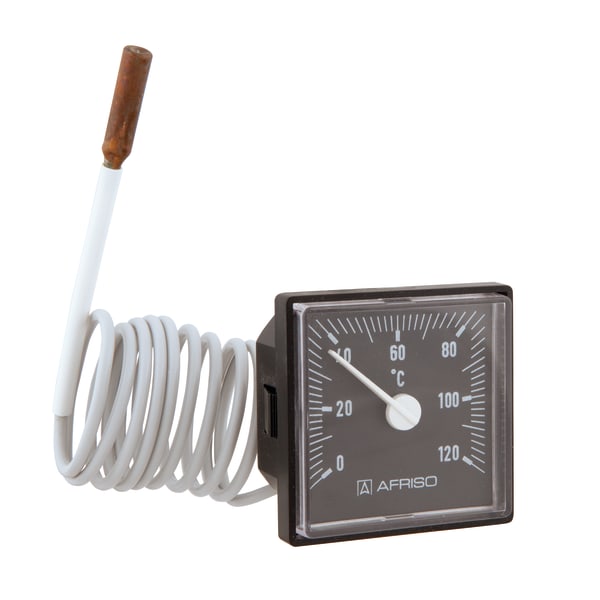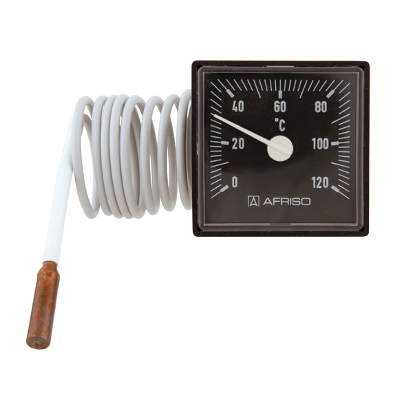 Products Our motto "Technology for Environmental Protection" has long been an inherent part of our product development philosophy and product range. We strive to improve the environment, to make processes which work with greater environmental compatibility and to avoid putting a strain on the environment. We offer you a multitude of innovative solutions, new products and smart concepts. More Informations Industries & Topics Industries & Topics Overview Fuel oil components Fuel oil components Overview Fast and clean oil filter change Avoiding fungal attacks in biofuel More performance with the sintered plastic sieve AFRISO Smart Home AFRISO Smart Home Overview Gateway HG 02 Products Products Overview AFRISOhome App Alexa Smart home applications Smart home applications Overview Leakage security Security Stand-alone applications Stand-alone applications Overview Getting started with AFRIShome Smart Home Craft 4.0 Craft 4.0 Overview OEM-Manifold systems Hydraulic Balancing Hydraulic Balancing Overview VarioQ Vario-DP Tank conversion Hygienic processes AFRISO Smart Home AFRISO Smart Home offers innovative solutions for intelligent home automation. With modern sensors and actuators, you can easily and conveniently control your home. More Informations Service-Center Service-Center Overview Service Contact persons Data exchange formats Catalogs Service-Center Flexible, cost-aware, on schedule, solution-oriented and fast – the AFRISO team always provides the decisive added value. More Informations Training & Events Training & Events Overview Exhibitions Exhibitions Overview SHK+E 2026, Essen IFH Intherm 2026, Nuremberg GET Nord 2026, Hamburg Search Domestic technology Temperature measuring instruments for domestic technology THK 45 Images 3 THK 45 Thermometers with capillary tube Variants Benefits ideal for boilers and water heaterscorrosion-resistant, highly impact-resistant plastic housingmany customised versions available Application Heating and plumbing, e.g. boilers, water heaters, hot water storage tanks Variants Technical data Variants Nominal sizeNominal sizeHousingpush on bezelPointerDialScaleRangecapillary lengthTypePart no.45 x 45 mmblackwhiteblackwhite0/120 °C500 mmTHK 456752210545 x 45 mmblackwhiteblackwhite0/120 °C1000 mmTHK 456752211545 x 45 mmblackwhiteblackwhite0/120 °C1500 mmTHK 456752212545 x 45 mmblackwhiteblackwhite0/120 °C2000 mmTHK 4567522135 in-stock items manufactured goods Technical data Nominal size45 x 45Range0/120 °CMeasuring principleLiquid fillingOperating temperature rangeMedium: Full scale valueAmbient: max. 70 °COperating pressurewithout pressureDegree of protectionIP 32 (EN 60529) Standard design ConnectionProbe: ∅ 6 x 30 mm, CopperCapillary tube: Copper with PVC coating (R3, grey)DialPlastic, blackScaling whitePointerPlastic, whiteHousingPlastic (ABS), blackwindowKunststoff, eingeclipstBezelTHK 45: Related products